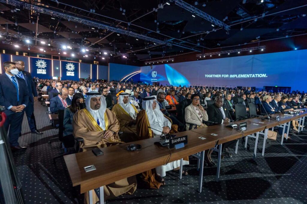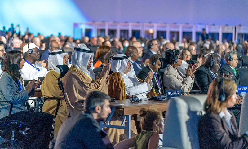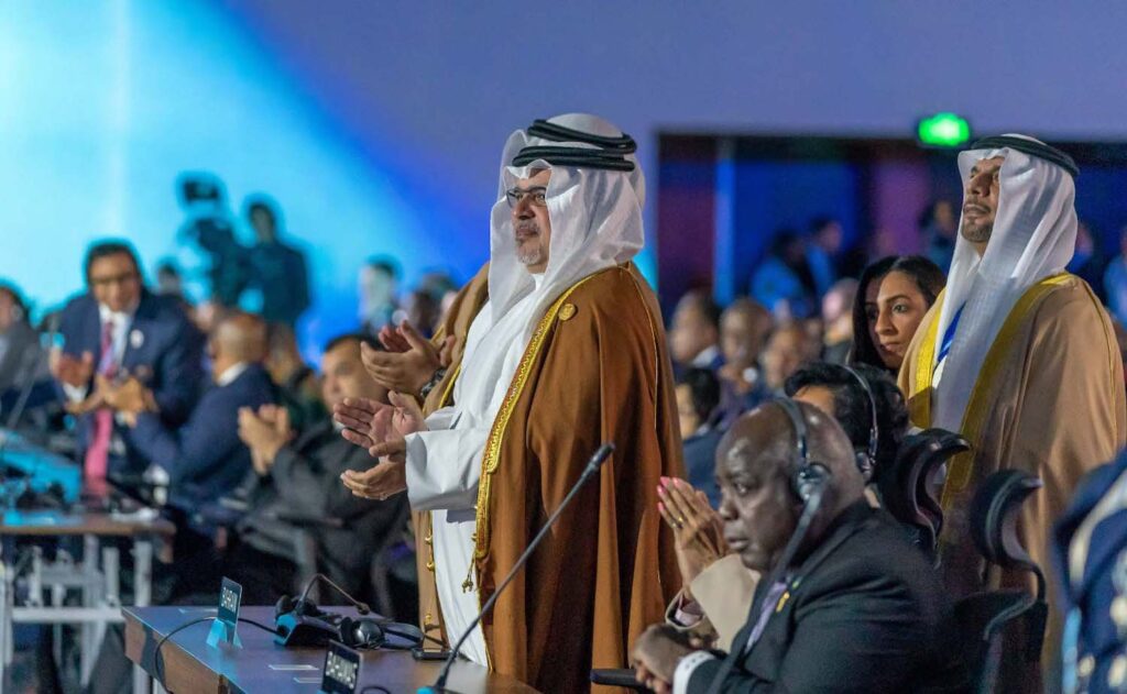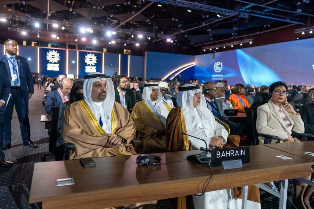 وقال سموه إن مملكة البحرين تضع نصب عينيها الوصول إلى الحياد الكربوني بحلول عام 2060، ومن أجل هذا الهدف تتم مواصلة الجهود لتحقيق ما تم الإعلان عنه في مؤتمر غلاسكو بالمملكة المتحدة (COP26) من التزام المملكة بمجموعة من الأهداف بحلول عام 2035، موضحًا أن هذه الأهداف تتضمن الخطة الوطنية للتشجير الهادفة إلى مضاعفة عدد الأشجار في مملكة البحرين، وتم على هذا الصعيد تجاوز هدف هذا العام بزراعة 140 ألف شجرة، إلى جانب زيادة أشجار نبات القرم بأربعة أضعاف حيث تمكنت مملكة البحرين من تحقيق الهدف السنوي لهذه المبادرة بنسبة 100% لهذا العام، إضافة إلى الاستثمار المباشر في تقنيات احتجاز الكربون. كما شملت الأهداف تخفيض الانبعاثات بنسبة 30% من خلال مبادرات إزالة الكربون ومبادرات تعزيز كفاءة استخدام الطاقة ومضاعفة مصادر الطاقة المتجددة، حيث زادت مملكة البحرين من طاقتها المتجددة بنسبة 40 % في العام الماضي، مشيراً سموه حرص المملكة المستمر على وضع الحلول المتقدمة في مجال التقاط الكربون واستخدامه وتخزينه، وتقليل كثافة انبعاثات الكربون.