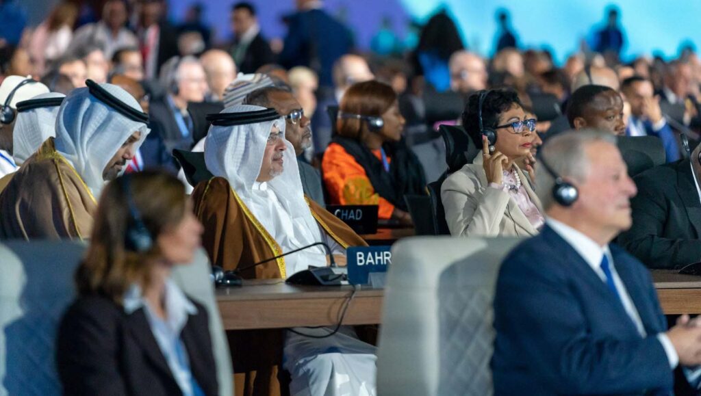 جاء ذلك لدى حضور صاحب السمو الملكي ولي العهد رئيس مجلس الوزراء حفظه الله اليوم، نيابةً عن حضرة صاحب الجلالة الملك المعظم حفظه الله ورعاه المؤتمر السابع والعشرين للأطراف في الأمم المتحدة الإطارية بشأن تغير المناخ (COP27) المنعقد بمدينة شرم الشيخ بجمهورية مصر العربية الشقيقة، حيث كان في استقبال سموه لدى وصوله أخيه فخامة الرئيس عبدالفتاح السيسي رئيس جمهورية مصر العربية الشقيقة، وقد نوه سموه بالجهود التي تقوم بها جمهورية مصر في استضافة هذا الحدث العالمي وما توليه من اهتمام للدفع بالتعاون الدولي فيما يتعلق بالشأن المناخي نحو التطلعات المنشودة، معرباً عن تمنياته بأن تتكلل أعمال هذا المؤتمر بالنجاح والتوفيق.