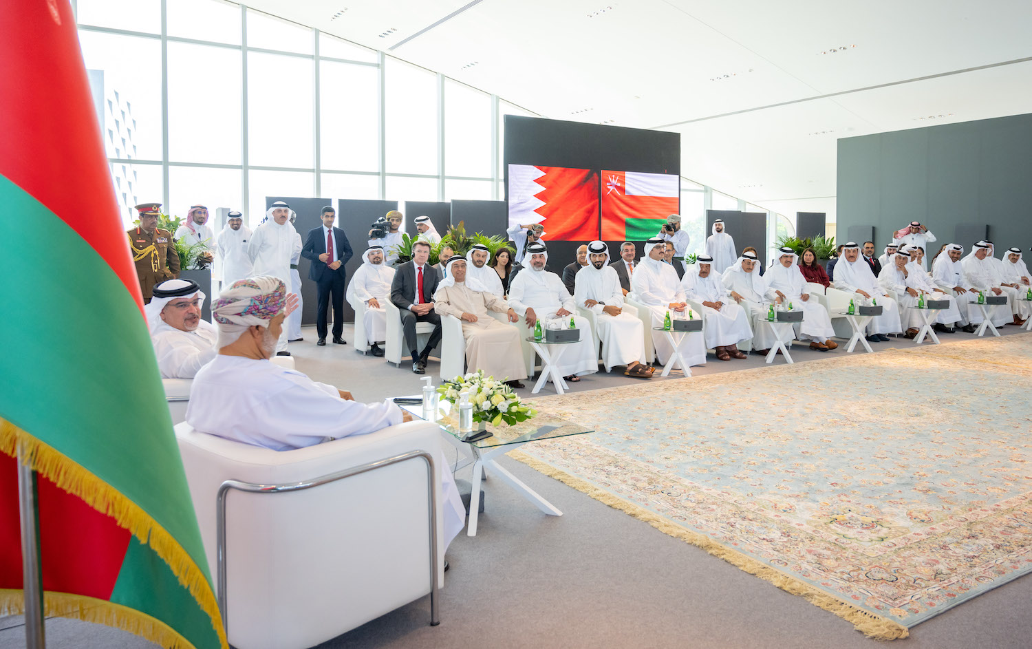 وقد اطّلع جلالة سلطان عمان خلال اللقاء على عرضٍ قدمه معالي الشيخ سلمان بن خليفة آل خليفة وزير المالية والاقتصاد الوطني عن ملخص أداء اقتصاد مملكة البحرين وآلية العمل في حكومة المملكة ومستجدات خطة التعافي الاقتصادي، وما تم إنجازه على صعيد تعزيز النمو الاقتصادي وفق مسارات وتطلعات رؤية البحرين الاقتصادية 2030، كما تم استعراض مستجدات خطة التعافي الاقتصادي والمشاريع التنموية الكبرى، وما وصلت إليه نسب الإنجاز فيها والذي يعكس الجهود الكبيرة التي تتم من أجل الوصول للأهداف المنشودة.