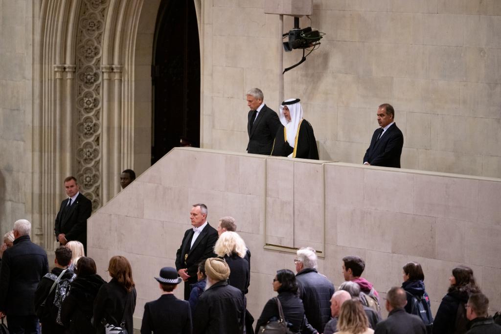 نيابة عن جلالة الملك المعظم … سمو ولي العهد رئيس مجلس الوزراء يزور نعش الملكة إليزابيث الثانية