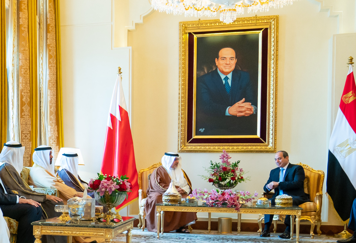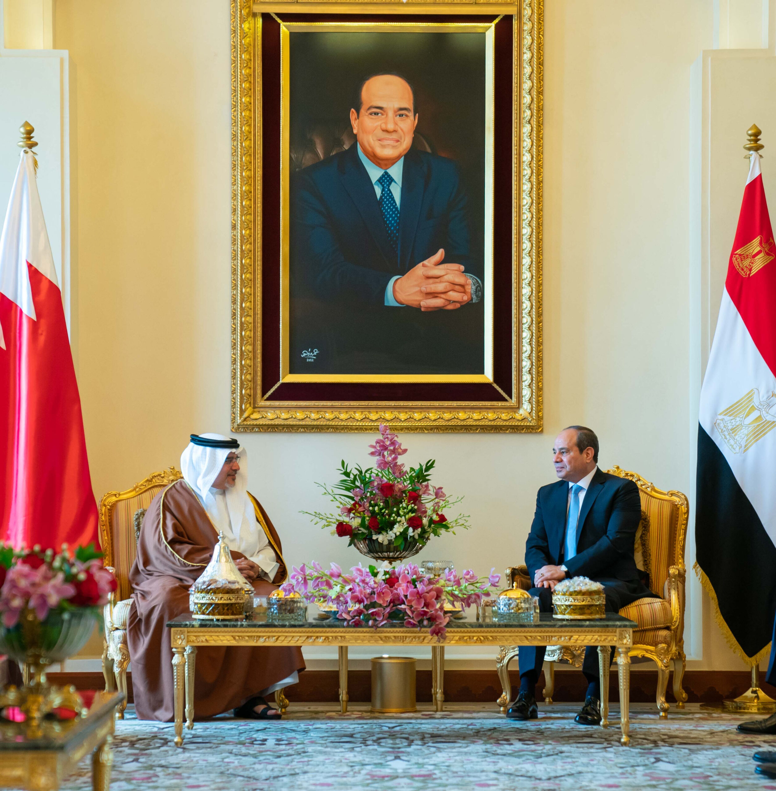 جاء ذلك لدى لقاء سموه بقصر الصخير اليوم، أخيه فخامة الرئيس عبدالفتاح السيسي رئيس جمهورية مصر العربية الشقيقة، بمناسبة زيارته الرسمية لمملكة البحرين، وذلك بحضور عدد من أصحاب المعالي والسعادة كبار المسؤولين، حيث رحب سموه بضيف البلاد الكبير، منوهاً سموه بأوجه التنسيق والشراكة القائمة بين البلدين الشقيقين على كافة المستويات، لافتاً سموه إلى أهمية الزيارة التي يقوم بها فخامة الرئيس المصري لمملكة البحرين وما ستشهده من توقيع اتفاقيات ومذكرات تفاهم نوعية تسهم في تعزيز الفرص المتبادلة نحو مزيد من التعاون الثنائي وتطوير مسار العلاقات المشتركة نحو آفاق أرحب ويصب في صالح نماء وازدهار البلدين والشعبين الشقيقين.