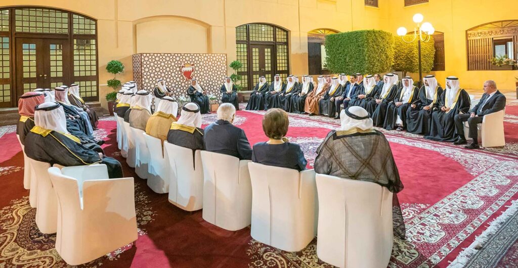 جاء ذلك لدى استقبال سموه حفظه الله بقصر الرفاع اليوم، بحضور سمو الشيخ محمد بن سلمان بن حمد آل خليفة وعدد من أصحاب المعالي والسعادة من كبار المسؤولين، عدداً من المواطنين من أصحاب المجالس الرمضانية، حيث تبادل سموه معهم التهاني بحلول شهر رمضان المبارك وأكد سموه على ما يضفيه هذا الشهر الفضيل من روحانية وتقرب إلى الله، وزيادة في التقارب والتواصل بين الجميع ومنها الزيارات بين أهالي المملكة في مجالسها العامرة تعزيزاً لهذه العادة الحسنة التي ترسخ عادات الآباء والأجداد لدى الأبناء لتتوارثها الأجيال جيلاً بعد آخر.
