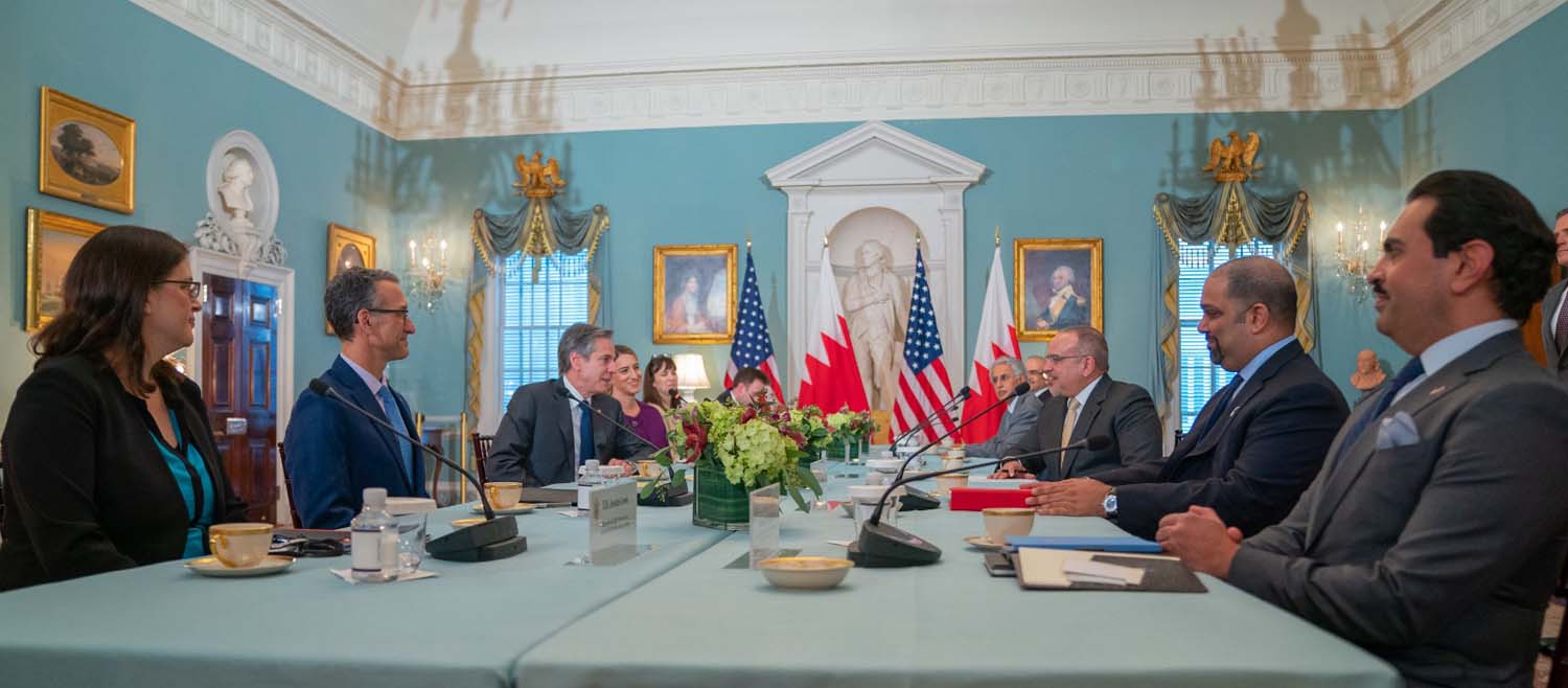 من جانبه أكد وزير خارجية الولايات المتحدة الأمريكية على أهمية الدفع بالعلاقات البحرينية الأمريكية الممتدة لأكثر من 75 عاما نحو آفاق أرحب على مختلف الأصعدة، مثمناً في الوقت ذاته دعم وشراكة مملكة البحرين كحليفٍ وشريكٍ استراتيجي رئيسي خارج حلف الناتو في مختلف القضايا وخاصة المتعلقة بالأمن والاستقرار.
