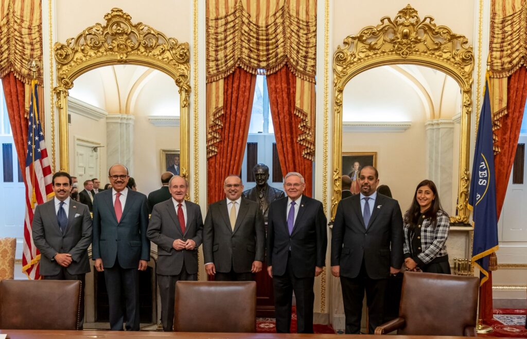 جاء ذلك لدى لقاء سموه حفظه الله اليوم السيناتور بوب مينندز رئيس لجنة العلاقات الخارجية في مجلس الشيوخ الأمريكي والسيناتور الجمهوري جيم ريش العضو البارز باللجنة، وذلك في إطار الزيارة الرسمية التي يقوم بها سموه إلى الولايات المتحدة الأمريكية، حيث نوّه سموه بمختلف الجهود المبذولة لتعزيز السلام والأمن والاستقرار العالمي بما يدعم تحقيق الخطط الموضوعة للوصول إلى التنمية المستدامة المنشودة للجميع، لافتًا إلى أهمية توحيد الجهود الدولية وتكثيفها بما يسهم في ترسيخ ركائز التنمية بالمنطقة والعالم.