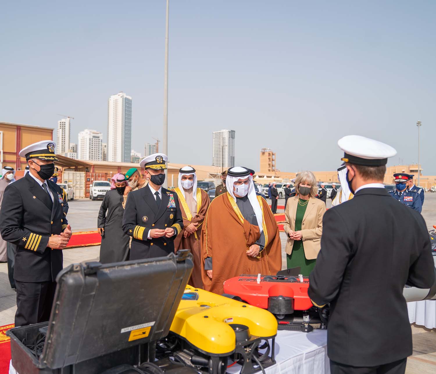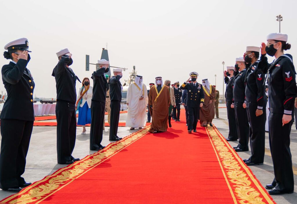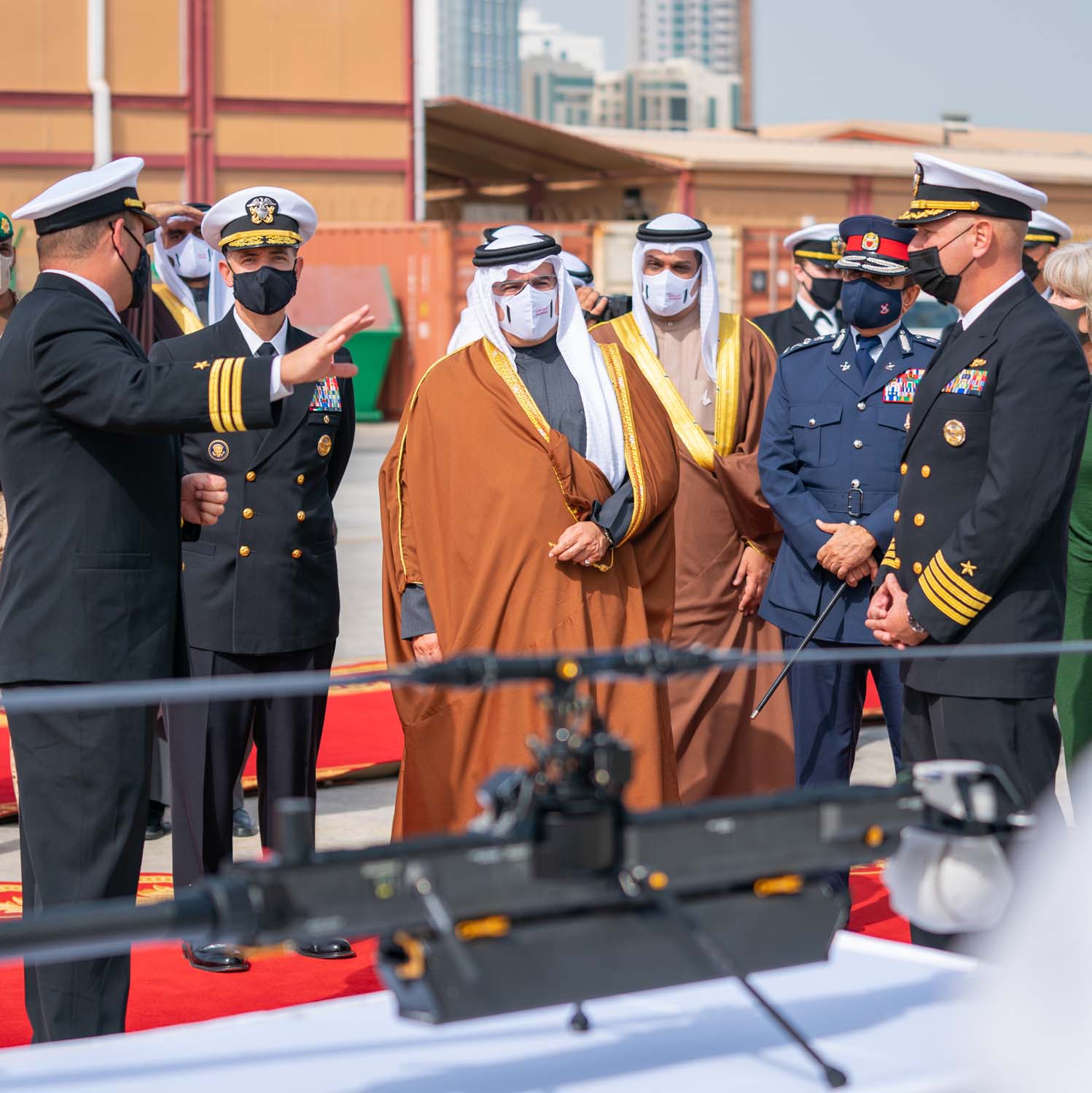 جاء ذلك لدى زيارة سموه حفظه الله اليوم يرافقه سمو الرائد الشيخ عيسى بن سلمان بن حمد آل خليفة إلى مقر وحدة الإسناد البحري الأمريكي بالمملكة بحضور الفريق أول معالي الشيخ راشد بن عبدالله آل خليفة وزير الداخلية ومعالي الشيخ سلمان بن خليفة آل خليفة وزير المالية والاقتصاد الوطني، وعدد من المسؤولين حيث كان في استقبال صاحب السمو الملكي ولي العهد نائب القائد الأعلى الأعلى رئيس مجلس الوزراء، الفريق بحري تشارلز برادفورد كوبر قائد القوات البحرية بالقيادة المركزية الأميركية قائد الأسطول الخامس، والقوات البحرية المشتركة، والسيدة مارغريت ناردي القائم بأعمال سفارة الولايات المتحدة الأمريكية لدى مملكة البحرين، وبعد أداء التحية البحرية العسكرية لسموه ترحيباً بوصوله، قُدم لسموه إيجاز عن عن الوضع الأمني في المنطقة ودور الأسطول الخامس الأميركي والمهام التي تقوم بها القوات البحرية الامريكية وقوات الدول الشقيقة والصديقة المتواجدة في المياه الاقليمية والتعاون المشترك بين البلدين الصديقين