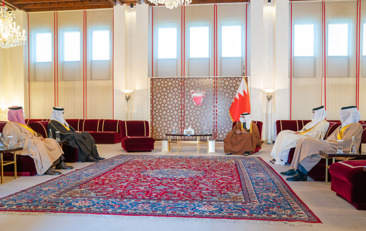 جاء ذلك لدى لقاء سموه حفظه الله في قصر الرفاع اليوم، بحضور سمو الشيخ عيسى بن سلمان بن حمد آل خليفة رئيس الهيئة العليا لنادي راشد للفروسية وسباق الخيل، وسعادة الدكتور عبداللطيف بن راشد الزياني وزير الخارجية، السفير الشيخ علي بن عبدالرحمن بن علي آل خليفة بمناسبة صدور المرسوم الملكي بتعيينه رئيساً للبعثة الدبلوماسية لمملكة البحرين لدى المملكة العربية السعودية الشقيقة، حيث هنأه سموه بالثقة الملكية السامية بتعيينه في هذا المنصب متمنيًا له التوفيق في أداء مهامه، كما أبلغه سموه بنقل تحياته إلى خادم الحرمين الشريفين الملك سلمان بن عبد العزيز آل سعود ملك المملكة العربية السعودية حفظه الله، وأخيه صاحب السمو الملكي الأمير محمد بن سلمان بن عبد العزيز آل سعود ولي العهد نائب رئيس مجلس الوزراء وزير الدفاع وأطيب تمنياته للشعب السعودي الشقيق بدوام الازدهار والنماء.