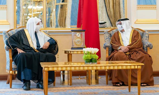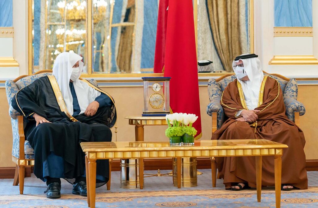 جاء ذلك لدى لقاء سموه حفظه الله بقصر القضيبية اليوم معالي الشيخ الدكتور عبد الله بن محمد آل الشيخ، رئيس مجلس الشورى بالمملكة العربية السعودية والوفد المرافق، بحضور معالي السيدة فوزية بنت عبدالله زينل رئيسة مجلس النواب، ومعالي السيد علي بن صالح الصالح، رئيس مجلس الشورى، ومعالي الشيخ سلمان بن خليفة آل خليفة وزير المالية والاقتصاد الوطني، وسعادة السيد غانم بن فضل البوعينين وزير شؤون مجلسي الشورى والنواب، حيث رحب سموه بمعالي رئيس مجلس الشورى السعودي والوفد المرافق في بلدهم الثاني مملكة البحرين متمنياً لهم طيب الإقامة، وأن تلقى زيارتهم النجاح المنشود من أجل تحقيق مزيدٍ من العمل المشترك بين البلدين الشقيقين في المجال البرلماني بما يحقق الرؤى المشتركة وينعكس على تعزيز التعاون الثنائي على كافة المستويات.