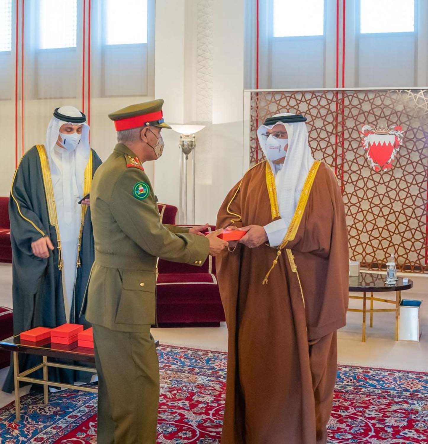 جاء ذلك لدى لقاء سموه حفظه الله، في قصر الرفاع اليوم، بحضور سمو الشيخ محمد بن سلمان بن حمد آل خليفة، ومعالي الشيخ سلمان بن خليفة آل خليفة وزير المالية والاقتصاد الوطني، سعادة الفريق الركن ذياب بن صقر النعيمي رئيس هيئة الأركان وعددًا من كبار الضباط بقوة دفاع البحرين، حيث تفضل سموه بتسليمهم وسام الأمير سلمان بن حمد للاستحقاق الطبي تقديرًا لجهودهم وعطائهم المستمر في التصدي لجائحة فيروس كورونا، وقد نقل سموه لهم تحيات وتقدير حضرة صاحب الجلالة الملك حمد بن عيسى آل خليفة عاهل البلاد المفدى القائد الأعلى حفظه الله ورعاه على ما قدموه طوال العامين الماضيين من جهود للتصدي للفيروس، منوهاً سموه بالدور الكبير والمشرف لقوة دفاع البحرين في التصدي لجائحة كورونا سواء من خلال الصفوف الأمامية أو المساندة مع تسخير كافة إمكانياتها وتجهيزاتها بالتعاون مع مختلف القطاعات ضمن فريق البحرين، مشيرًا سموه إلى أن قوة دفاع البحرين مساهمةٌ دوماً في مسيرة الخير والازدهار لمملكة البحرين كشريك أساسي في التنمية المستدامة، وجهودهم دائمًا محل اعتزاز وتقدير.