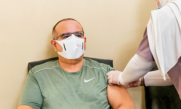 سمو ولي العهد رئيس مجلس الوزراء يتفضل بأخذ الجرعة المنشطة من التطعيم المضاد لفيروس كورونا (فايزر – بيونتيك)