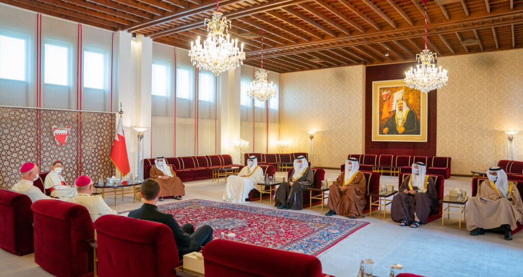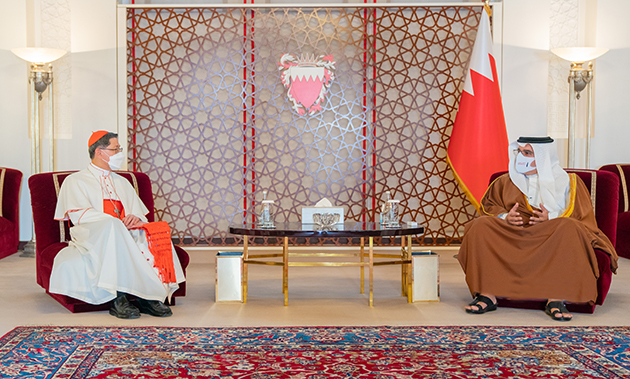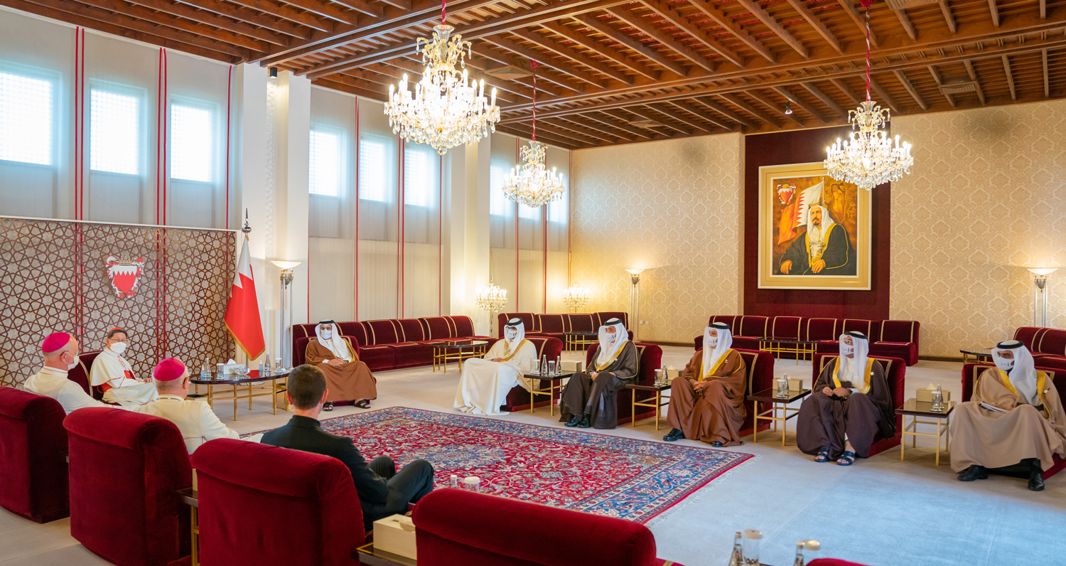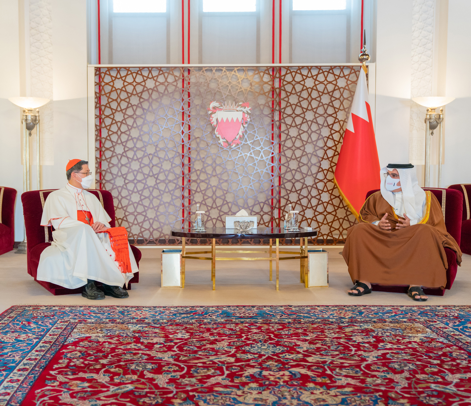 جاء ذلك لدى لقاء سموه حفظه الله بقصر الرفاع اليوم بحضور سمو الشيخ عيسى بن سلمان بن حمد آل خليفة رئيس الهيئة العليا لنادي راشد للفروسية وسباق الخيل وسعادة السيد جميل بن محمد علي حميدان وزير العمل والتنمية الاجتماعية، الكاردينال لويس أنطونيو تاغلي عميد مجمع تبشير الشعوب، حيث رحب سموه بالكاردينال لويس أنطونيو، مشيراً سموه إلى أن استلهام قيم التسامح والانفتاح من تعاليم ديننا الإسلامي الحنيف ونشر قيم المحبة والتسامح منطلقاً أساسيا في سياسات مملكة البحرين وتوجهاتها يدعمه ما يمتاز به أبناء الوطن من الالتقاء حول القيم الوطنية الجامعة والقائمة على الانفتاح على الجميع، لافتاً إلى أن المملكة تحرص دومًا على تعزيز المبادرات الساعية لتعزيز ثقافة التعددية والحوار إيماناً منها بأهمية ذلك في دعم التقارب بين الشعوب والثقافات وتكريس السلام.