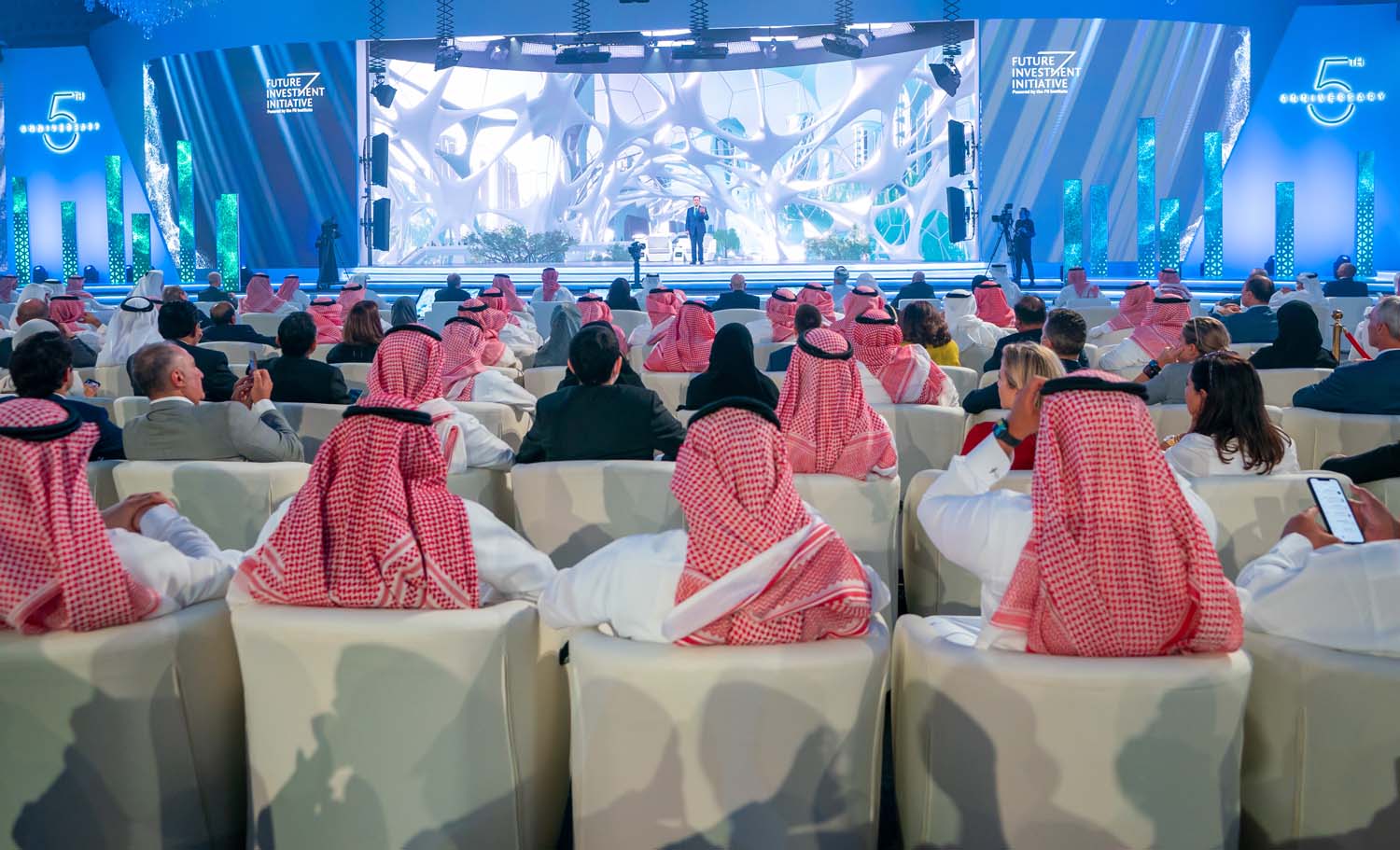 وأضاف سموه أن ما تم طرحه في النسخة الخامسة من منتدى مبادرة مستقبل الاستثمار يجدد الثقة في قوة الاقتصاد العالمي ويبعث على الأمل في إعادة رسم ملامح تعافيه عبر مختلف الاستثمارات والشراكات التي تهدف المبادرة إلى تحقيقها، منوهًا بأهمية تحفيز أوجه الإبداع والابتكار في مجالات الاستثمار لتنويع اقتصادات المنطقة ودعم نموها.
