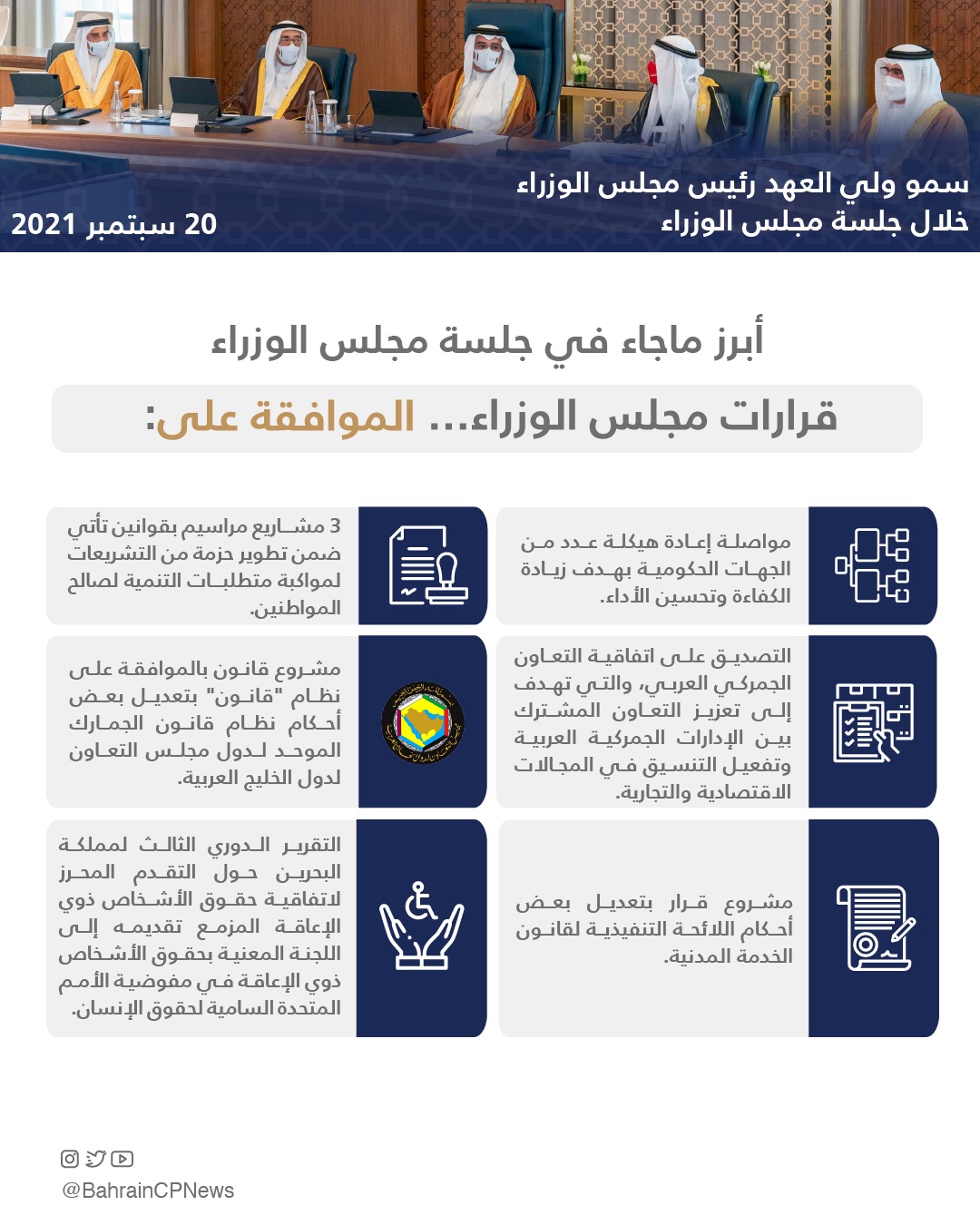 سمو ولي العهد رئيس مجلس الوزراء يترأس الاجتماع الاعتيادي الأسبوعي لمجلس الوزراء