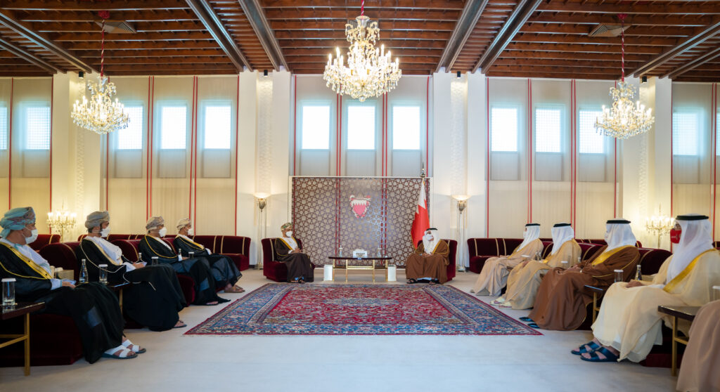 جاء ذلك لدى لقاء سموه حفظه الله بقصر الرفاع اليوم، بحضور سمو الشيخ محمد بن سلمان بن حمد آل خليفة، وسعادة الدكتور عبداللطيف بن راشد الزياني وزير الخارجية، ومعالي الشيخ سلمان بن خليفة آل خليفة وزير المالية والاقتصاد الوطني، معالي السيد بدر بن حمد بن حمود البوسعيدي وزير خارجية سلطنة عمان الشقيقة بمناسبة زيارته للمملكة للمشاركة في اجتماع الدورة السابعة للّجنة الوزارية المشتركة بين مملكة البحرين وسلطنة عمان، حيث نقل معالي وزير الخارجية تحيات حضرة صاحب الجلالة السلطان هيثم بن طارق آل سعيد سلطان عمان إلى صاحب السمو الملكي ولي العهد رئيس مجلس الوزراء، كما حمّله سموه نقل تحياته إلى صاحب الجلالة سلطان عمان الشقيقة حفظه الله.