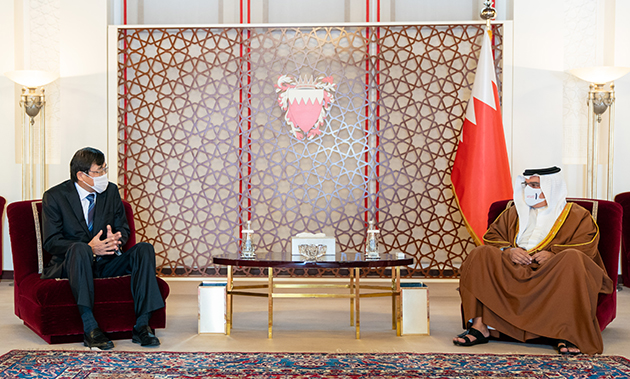 جاء ذلك لدى لقاء سموه حفظه الله بقصر الرفاع اليوم، بحضور سمو الشيخ محمد بن سلمان بن حمد آل خليفة، سعادة السيد مياموتو ماسايوكي سفير اليابان بمناسبة تعيينه سفيرًا لبلاده لدى مملكة البحرين، حيث رحّب سموه بالسفير الياباني متمنيًا له التوفيق في أداء مهامه الدبلوماسية، منوهًا سموه بأهمية مواصلة البناء على ما تحقق في المجالات كافة بما يسهم في خلق المزيد من الفرص النوعية في جميع القطاعات تلبيةً للطموحات المشتركة بين البلدين والشعبين الصديقين.