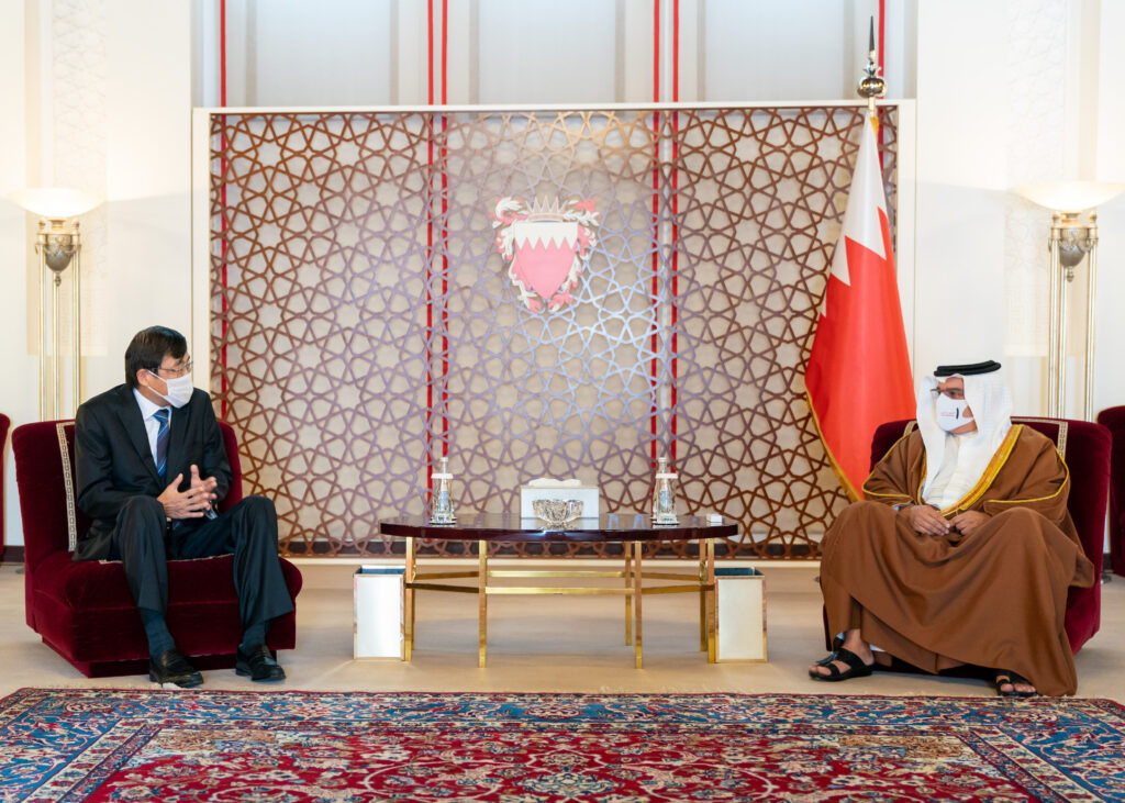 سمو ولي العهد رئيس مجلس الوزراء يلتقي سعادة السيد مياموتو ماسايوكي سفير اليابان بمناسبة تعيينه سفيرًا لبلاده لدى مملكة البحرين