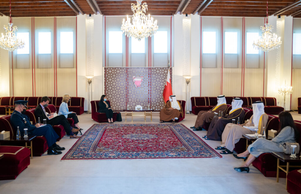 جاء ذلك خلال استقبال سموه، حفظه الله، في قصر الرفاع اليوم، بحضور معالي الشيخ سلمان بن خليفة آل خليفة، وزير المالية والاقتصاد الوطني، دانا سترول نائب مساعد وزير الدفاع الأمريكي لشؤون الشرق الأوسط، حيث رحب سموه بزيارة نائب مساعد وزير الدفاع الأمريكي إلى المملكة، مشيدًا بما يجمع بين البلدين الصديقين من علاقات وثيقة عززتها الاتفاقيات المشتركة والتي أسهمت في فتح آفاق أرحب في مختلف المجالات بما يلبي التطلعات المشتركة، منوها سموه بالدور الذي تقوم به الولايات المتحدة الأمريكية في تعزيز الأمن والاستقرار بالمنطقة.