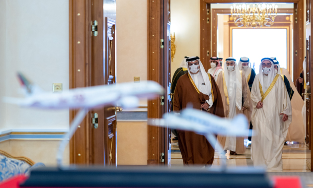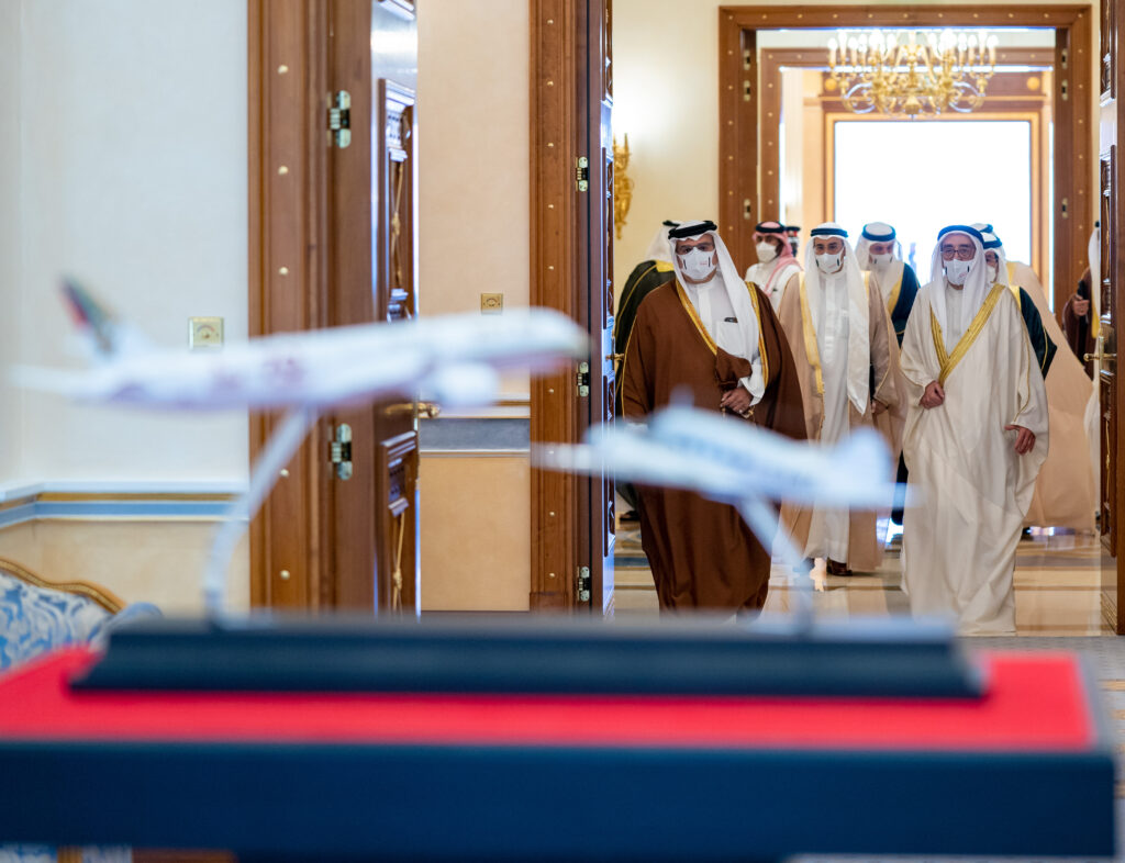 جاء ذلك لدى لقاء سموه حفظه الله، في قصر القضيبية اليوم، سعادة السيد زايد بن راشد الزياني وزير الصناعة والتجارة والسياحة رئيس مجلس إدارة شركة طيران الخليج، حيث تشرف بإهداء سموه مجسمًا لطائرة من أسطول طيران الخليج بمناسبة مرور 70 عاماً على تأسيس الشركة.