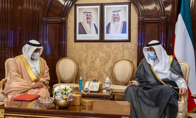 بعث صاحب السمو الملكي الأمير سلمان بن حمد آل خليفة ولي العهد رئيس مجلس الوزراء حفظه الله رسالة خطية إلى أخيه سمو الشيخ صباح الخالد الحمد الصباح رئيس مجلس الوزراء بدولة الكويت الشقيقة تتصل بالعلاقات الأخوية الوثيقة ومسارات التعاون المشترك بين البلدين الشقيقين، نقلها معالي الشيخ سلمان بن خليفة آل خليفة وزير المالية والاقتصاد الوطني لسمو رئيس مجلس الوزراء بدولة الكويت الشقيقة، وذلك خلال استقبال سموه له اليوم في قصر بيان بحضور معالي وزير المالية ووزير الدولة للشؤون الاقتصادية والاستثمار خليفة مساعد حمادة.