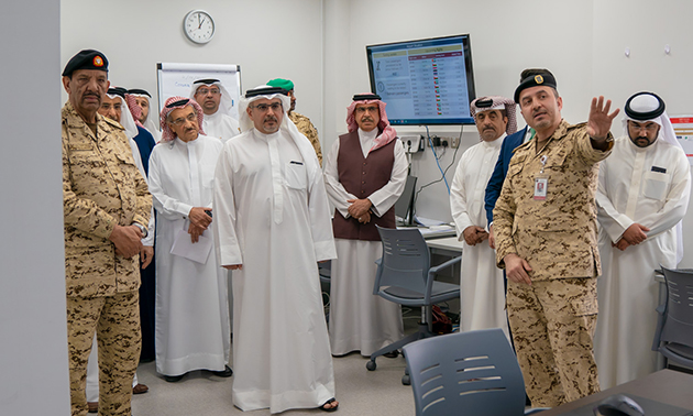 سمو ولي العهد يزور غرفة العمليات التابعة للفريق الوطني للتصدي لفيروس كورونا (كوفيد 19) في مركز ولي العهد للتدريب والبحوث الطبية بالمستشفى العسكري