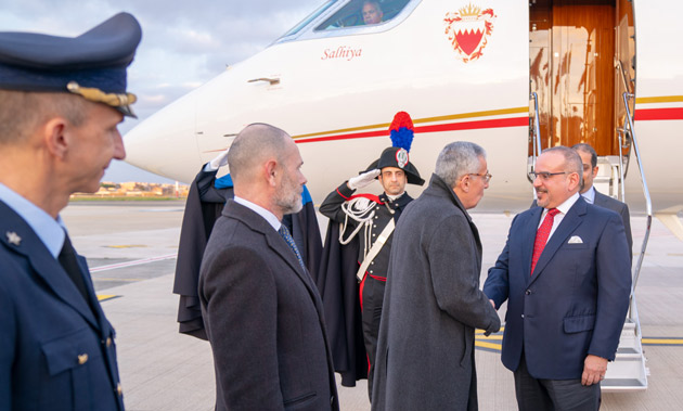 وصل صاحب السمو الملكي الأمير سلمان بن حمد آل خليفة ولي العهد نائب القائد الأعلى النائب الأول لرئيس مجلس الوزراء بحفظ الله ورعايته إلى الجمهورية الإيطالية الصديقة، في زيارة رسمية يلتقي خلالها كبار المسؤولين في الحكومة الإيطالية لاستعراض العلاقات الثنائية، التي تجمع البلدين الصديقين وسبل تعزيزها على كافة الأصعدة.