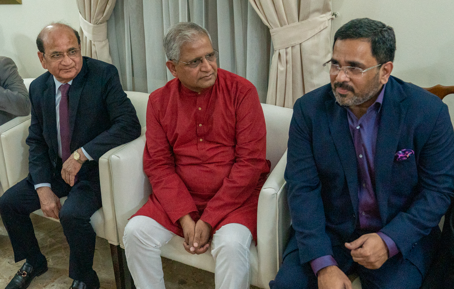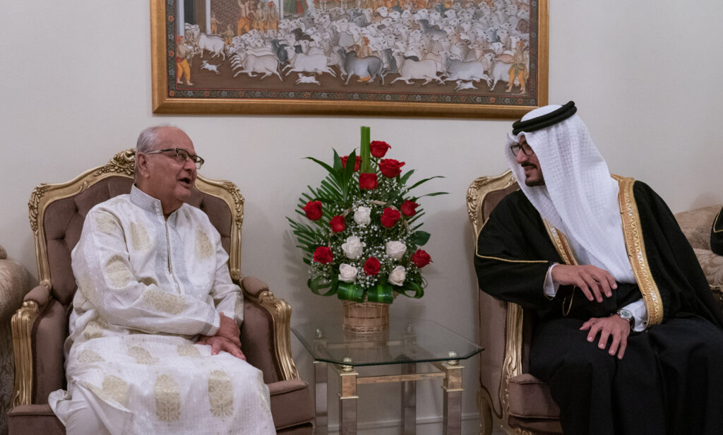 ونقل سموه تحيات وتهاني صاحب السمو الملكي ولي العهد نائب القائد الأعلى النائب الأول لرئيس مجلس الوزراء لأسر ثاكير وفايديا واساربوتا وباتيا وكويلرام، كما قدم سموه تهانيه بهذه المناسبة.