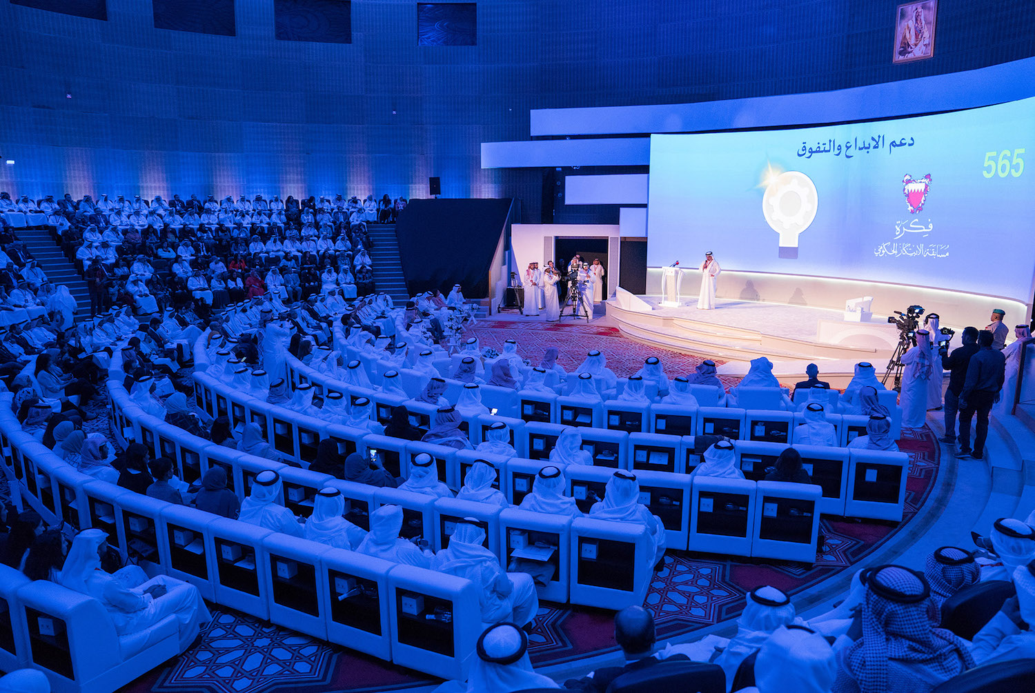 واعتزازا بالكوادر الوطنية قال سموه إنه تم إطلاق مسابقة الابتكار الحكومي (فكرة) مؤخرا، حيث وصلت عدد المشاركات فيها إلى 565، مشيرا سموه إلى أن جميع تلك المقترحات التي قدمت ستخضع لمراحل من التقييم بعد عرضها على لجان من ذوي الشأن والاختصاص لاختيار المقترحات الفائزة، وقال سموه إن العمل مستمر والتحديات تتجدد وبالعزم والعمل يستمر الإنجاز.