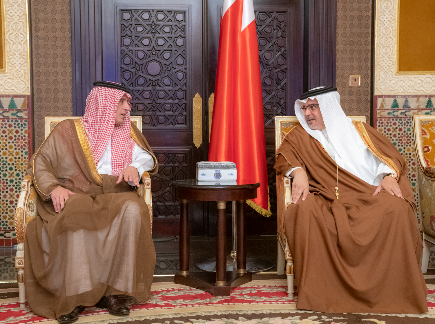جاء ذلك لدى لقاء سموه حفظه الله اليوم بحضور سمو الشيخ عيسى بن سلمان بن حمد آل خليفة معالي السيد عادل بن أحمد الجبير وزير خارجية المملكة العربية السعودية الشقيقة بمناسبة مشاركته في أعمال منتدى حوار المنامة الرابع عشر، حيث نوه سموه بحرص الشقيقة الكبرى بالحضور والمشاركة في أعمال هذا المنتدى والذي يساهم بشكل كبير في نجاحه في ضوء ما تحوزه المملكة من مكانة وثقل عالمي ودورها البارز في دعم قضايا الأمن والسلام والتنمية على المستويين الاقليمي والدولي.