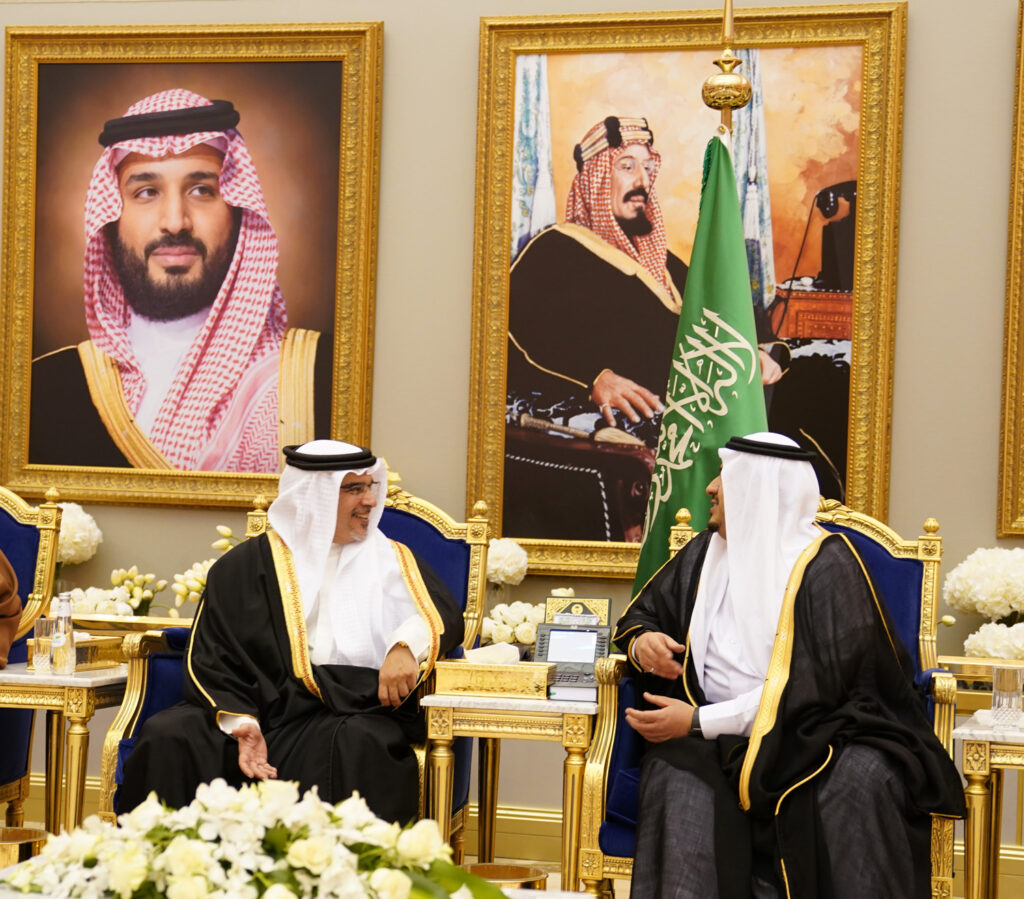 إننا في مملكة البحرين ننظر بعين الفخر والاعتزاز بما يربط مملكة البحرين والمملكة العربية السعودية الشقيقة من علاقات تاريخية وتعاون وثيق وبدورها المبادر دائما نحو تأكيد مكانة المنطقة على الصعيد الاقتصادي وتعزيز المنجزات التنموية التي يعم خيرها على الجميع إلى جانب جهودها في دعم ركائز الاستقرار والأمن باعتبارهما أساس التنمية والازدهار.