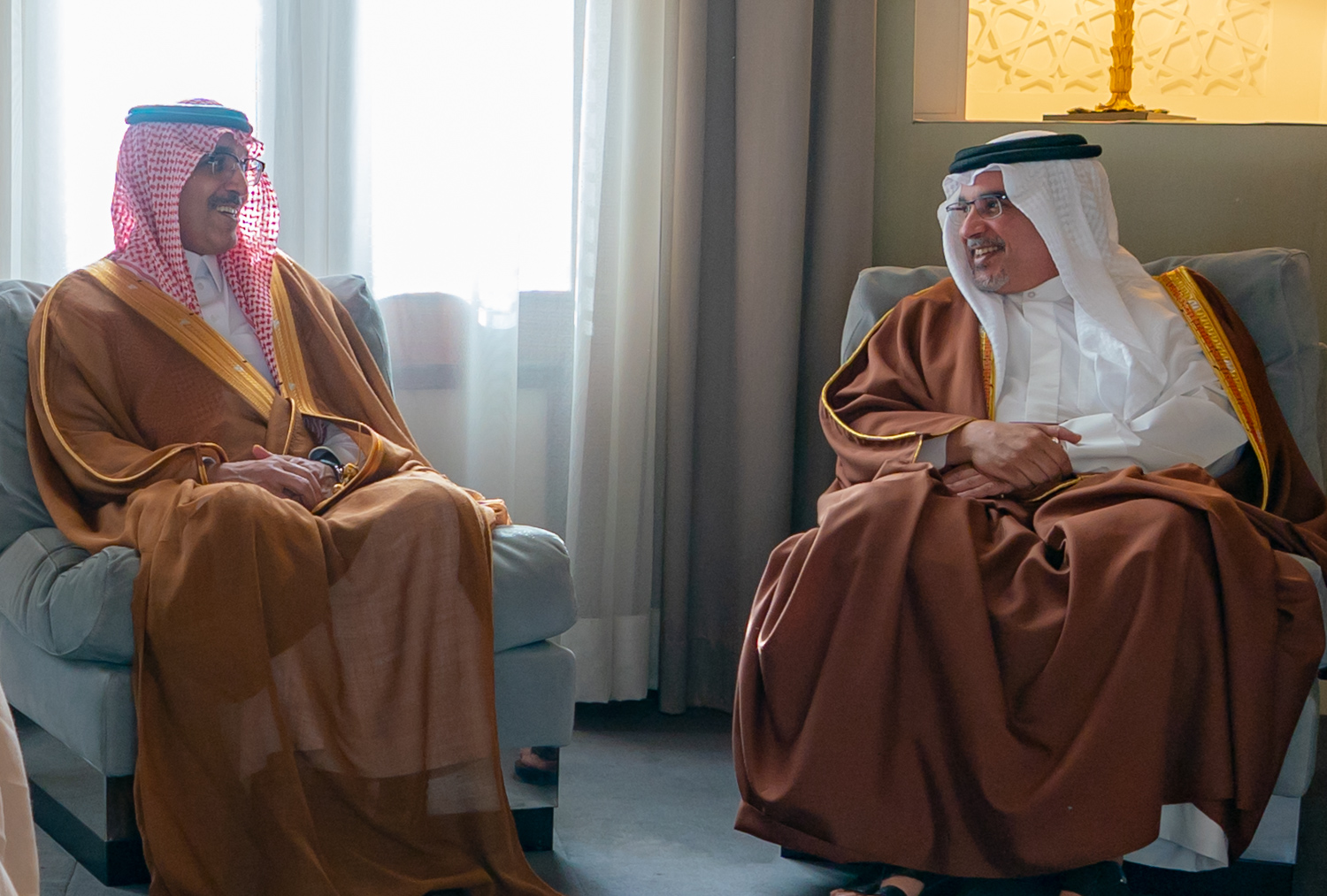 جاء ذلك لدى لقاء سموه حفظه الله بقصر الرفاع اليوم بحضور معالي الشيخ أحمد بن محمد آل خليفة وزير المالية، معالي السيد محمد بن عبدالله الجدعان وزير المالية بالمملكة العربية السعودية، ومعالي السيد عبيد بن حميد الطاير وزير الدولة للشؤون المالية بدولة الإمارات العربية المتحدة، ومعالي الدكتور نايف بن فلاح الحجرف وزير المالية بدولة الكويت، ومعالي الدكتور عبدالرحمن بن عبدالله الحميدي المدير العام ورئيس مجلس إدارة صندوق النقد العربي. حيث أشاد سموه بمواقف الدول الشقيقة لدعم تعزيز استقرار المالية العامة ومواصلة تحفيز النمو الاقتصادي بمملكة البحرين.
