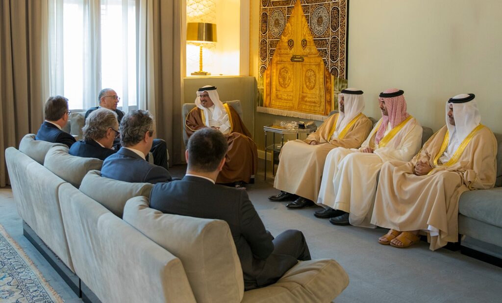جاء ذلك لدى لقاء سموه في قصر الرفاع اليوم مع أعضاء لجنة ملف الترشح الأمريكي الكندي المكسيكي لبطولة كأس العالم لكرة القدم 2026 رئيس اتحاد كرة القدم الأمريكي السيد كارلوس كوديرو ورئيس اتحاد كرة القدم المكسيكي السيد ديسيو دي ماريا ورئيس اتحاد كرة القدم الكندي السيد بيتر مونتوبولي، وذلك بحضور سعادة رئيس الإتحاد البحريني لكرة القدم الشيخ علي بن خليفة بن أحمد آل خليفة.