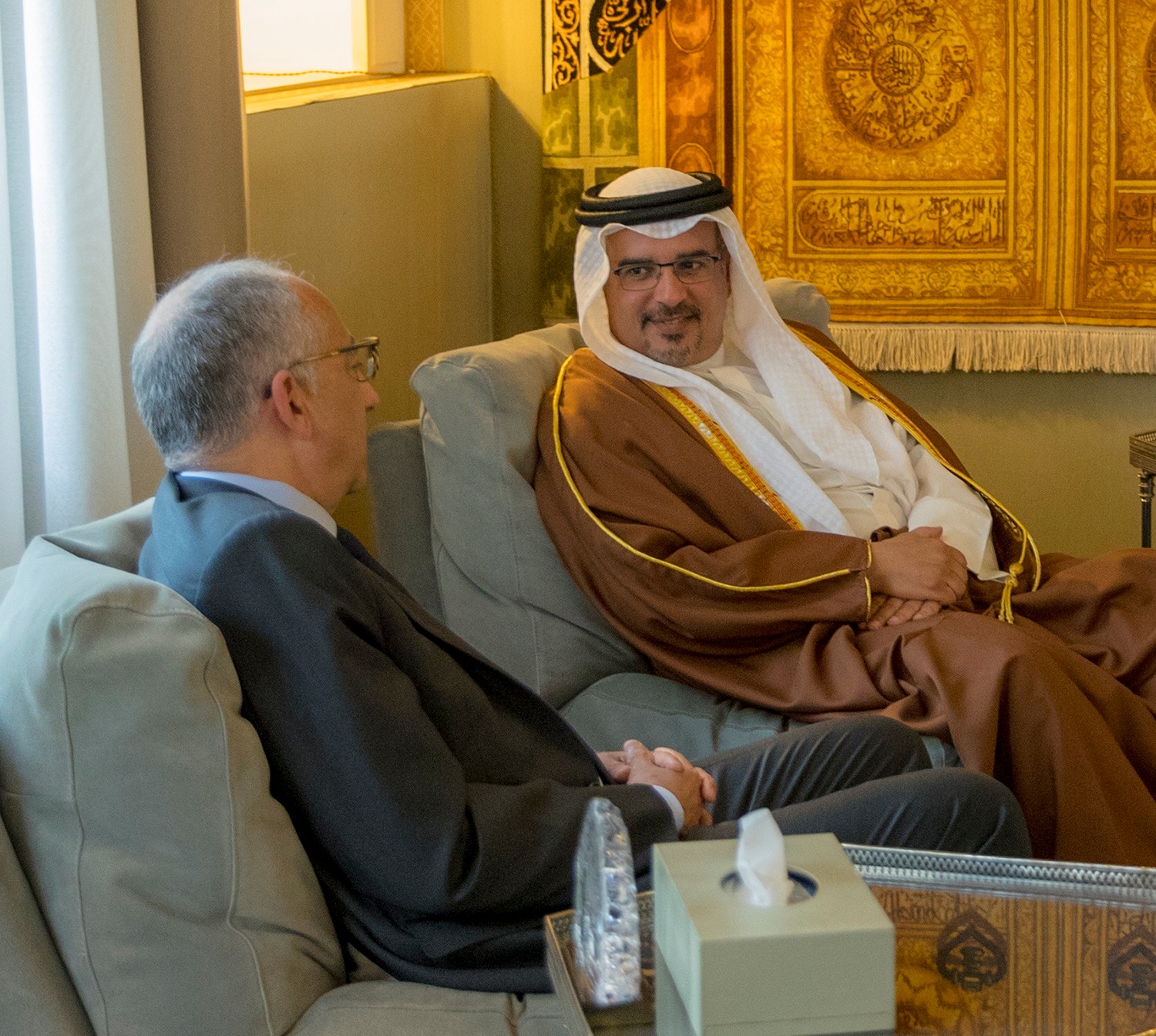 ورحب سمو نائب جلالة الملك بزيارة الوفد الرياضي، منوهاً بالعلاقات الطيبة التي تجمع مملكة البحرين مع بلدانهم ومتمنياً التوفيق لهم خلال زيارتهم إلى البحرين.