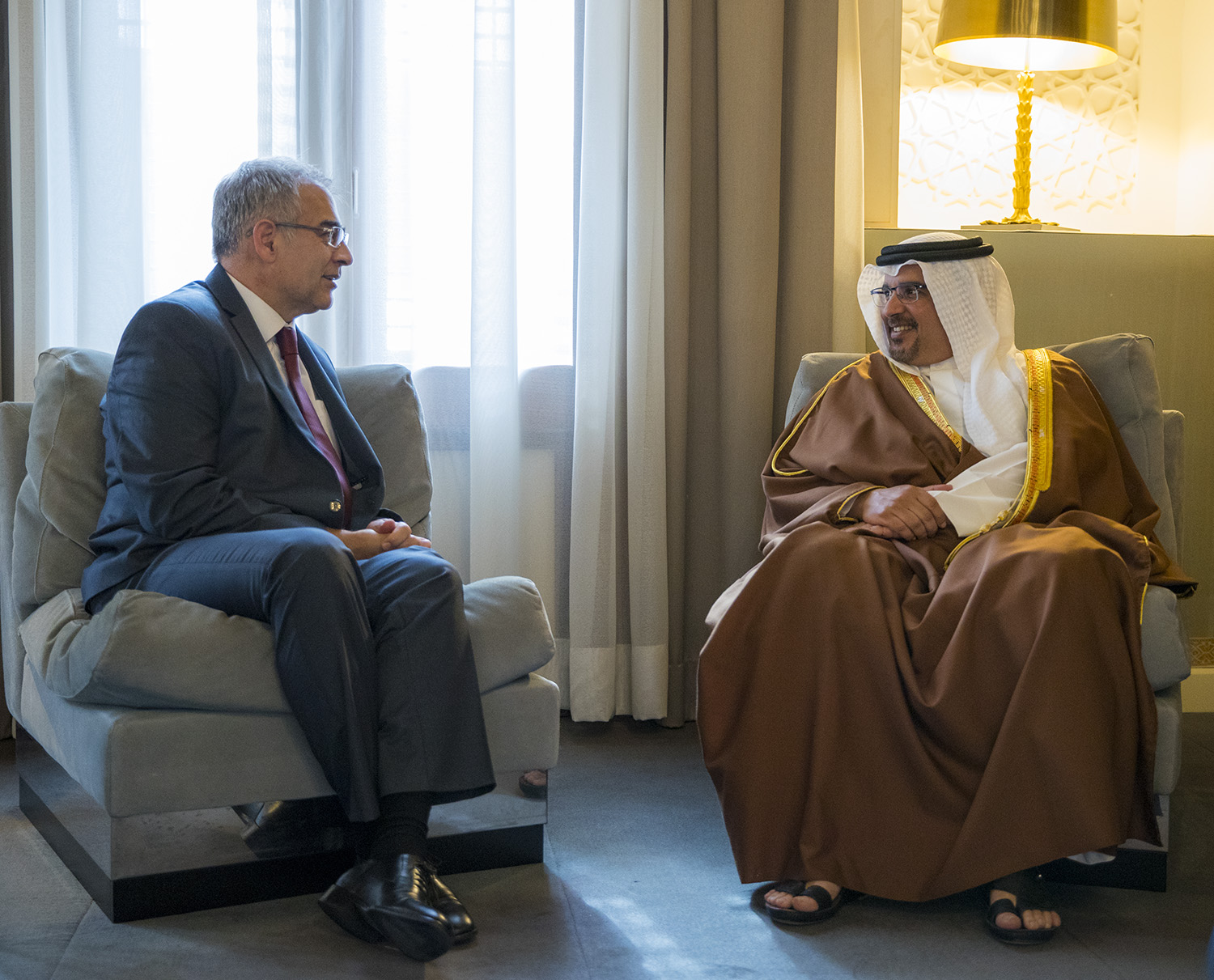 جاء ذلك لدى لقاء سموه حفظه الله بقصر الرفاع اليوم سعادة السيد كمال ديميرجيلر سفير جهورية تركيا بمناسبة تعيينه سفيراً لبلاده لدى المملكة، حيث رحب سموه بسعادة السفير ونوه بمسارات التعاون المشترك بين البلدين وسبل تعزيزها عبر تفعيل الاتفاقيات ومذكرات التفاهم التي تربطهما بما ينعكس على مواصلة تطوير التعاون التجاري والاستفادة من الفرص الاستثمارية لدى البلدين، متمنياً سموه لسعادة السفير التوفيق والنجاح في أداء مهامه الدبلوماسية بما يخدم البلدين والشعبين.