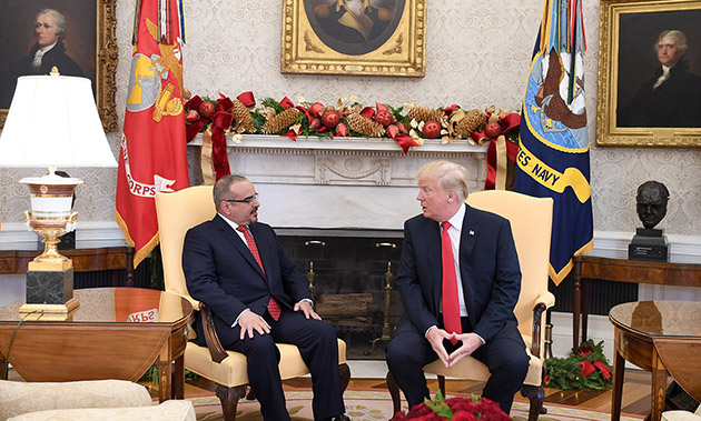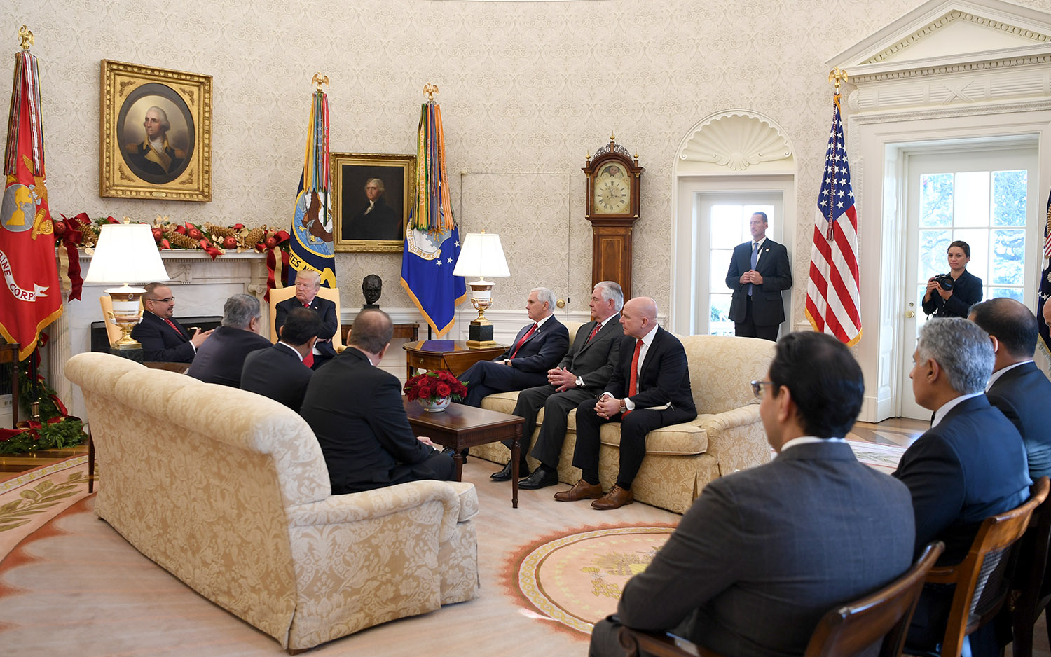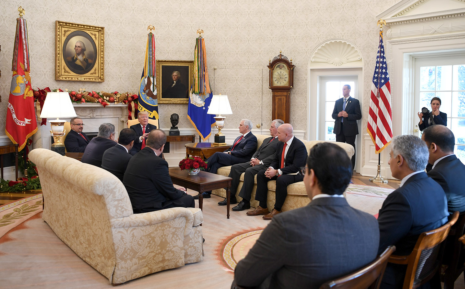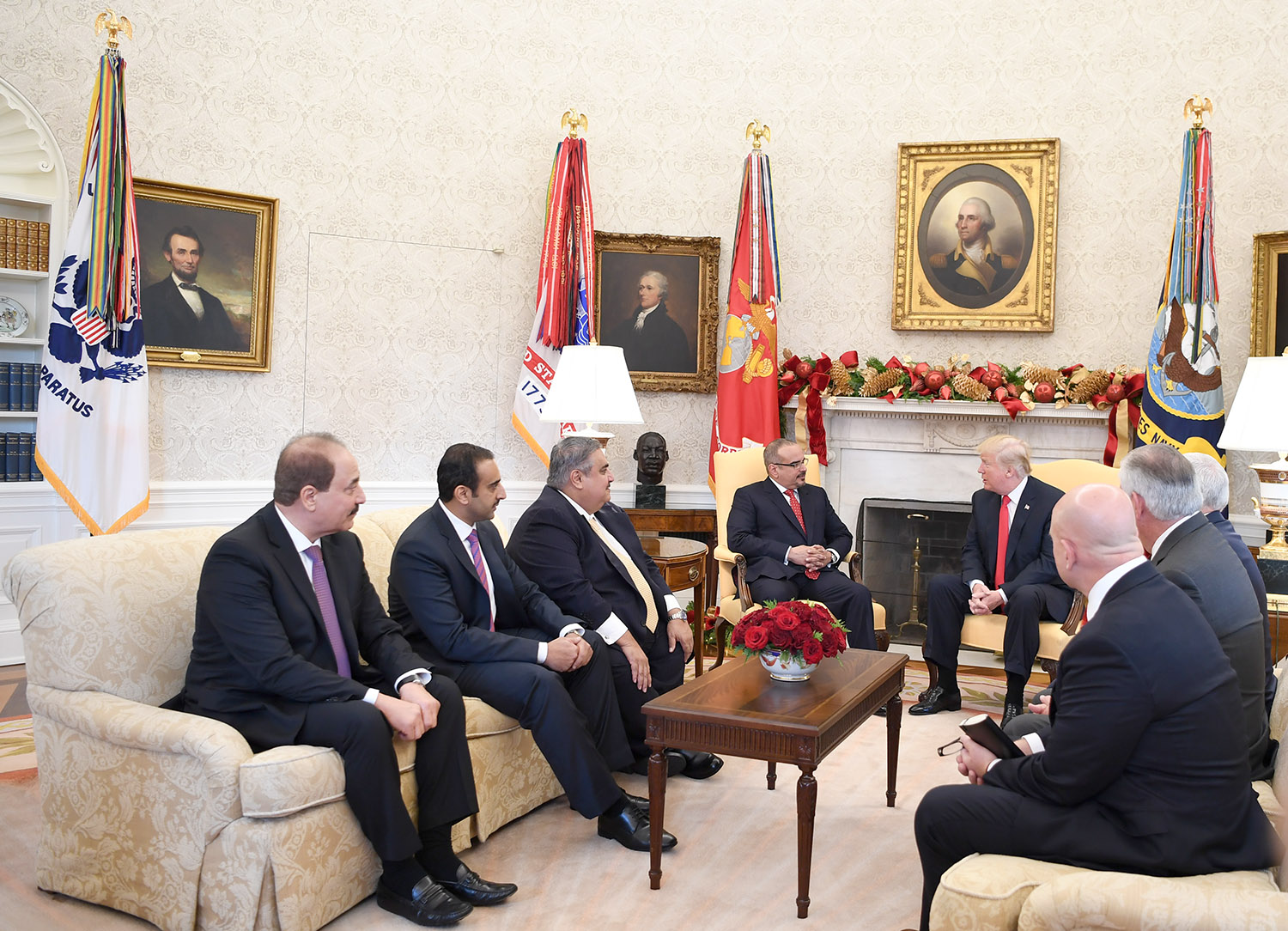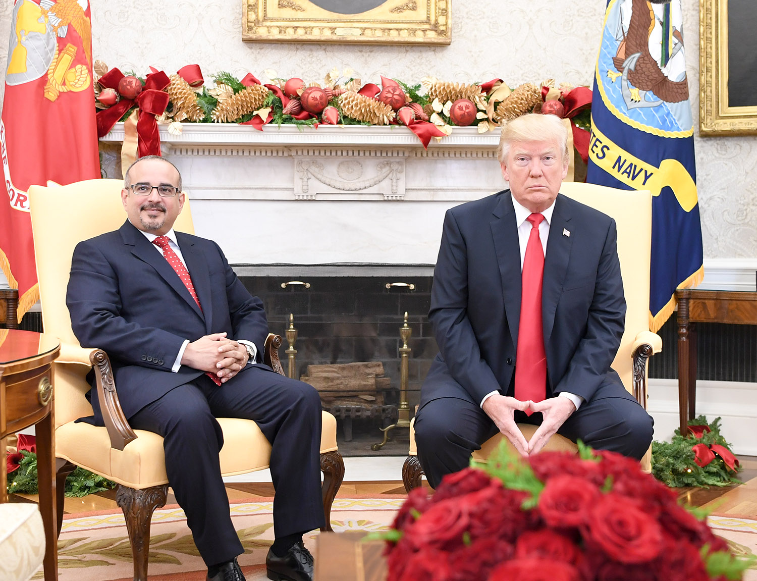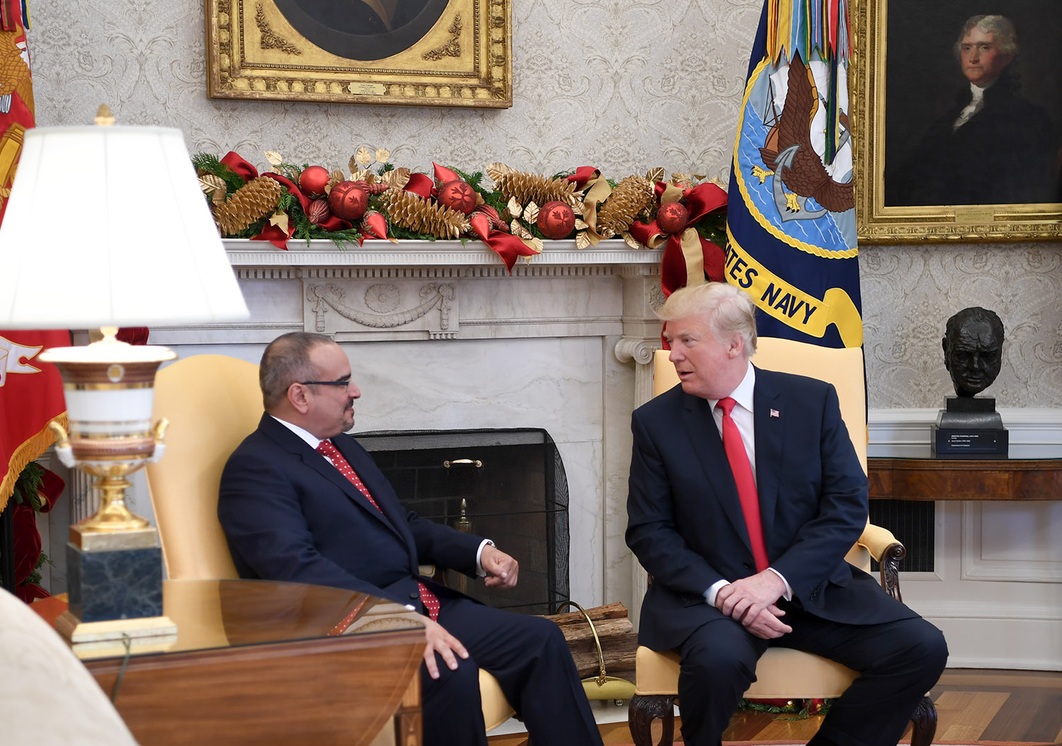 جاء ذلك لدى استقبال فخامة الرئيس السيد دونالد ترامب رئيس الولايات المتحدة الأمريكية لصاحب السمو الملكي في البيت الأبيض بالعاصمة الأمريكية واشنطن، حيث نقل سموه تحيات حضرة صاحب الجلالة الملك المفدى حفظه الله ورعاه في لقاء استعرض أفق العلاقات البحرينية الأمريكية ومواصلة تطويرها على مختلف المستويات ليشمل ذلك تعزيز التعاون في النواحي الاستراتيجية والدفاعية والاقتصادية مما يبني على القاعدة الصلبة التي توفرها العلاقات الوثيقة بين البلدين.