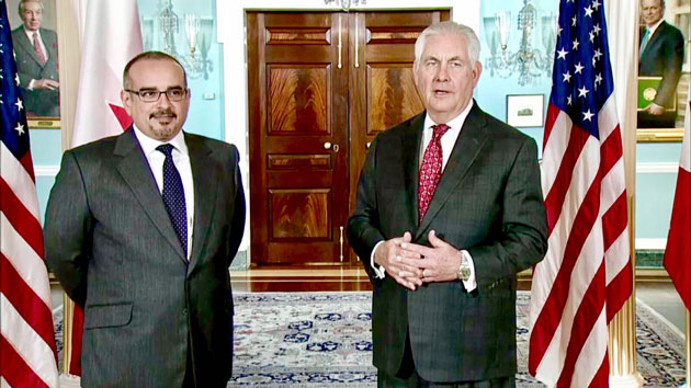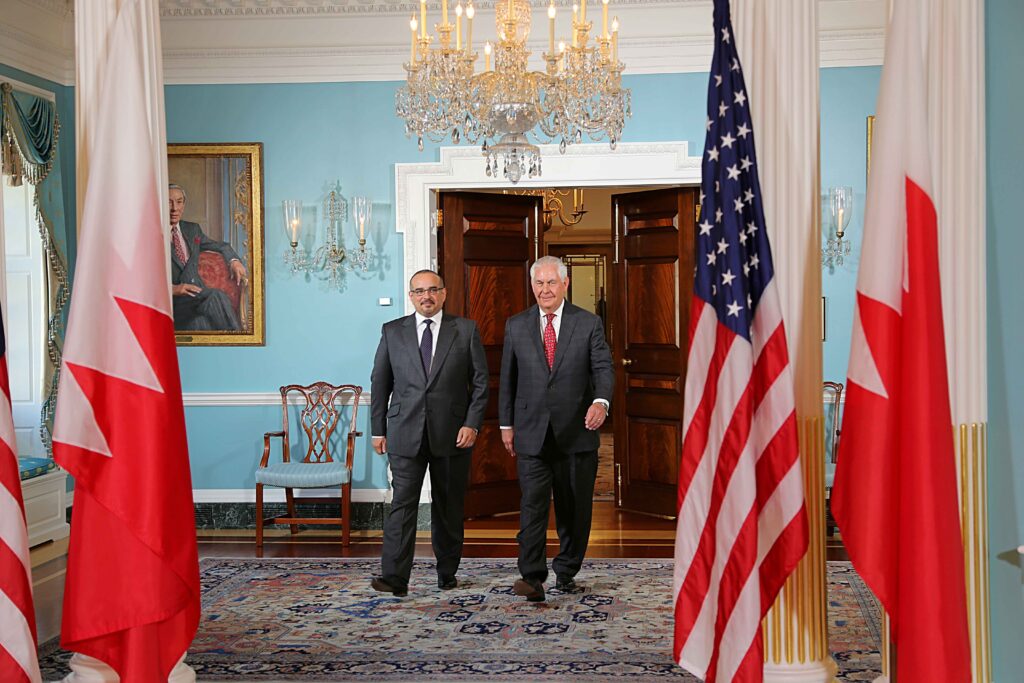 ولدى لقاء سموه مع السيد ريكس تيلرسون وزير الخارجية الأمريكي في واشنطن اليوم ، أشار سموه إلى أن مملكة البحرين بقيادة حضرة صاحب الجلالة الملك الوالد حمد بن عيسى آل خليفة عاهل البلاد المفدى حفظه الله وفي إطار الشراكة الإيجابية التي تجمعهما قد عملت بشكل فاعل مع الولايات المتحدة في العمليات المشتركة للتصدي للإرهاب والتطرف إضافة إلى التنسيق عالي المستوي لقطع الدعم عن الإرهاب من خلال التمويل، مما يأتي ليؤكد تطابق وجهات النظر بين البلدين الصديقين حيال هذه التحديات التي تسعى لتقويض القيم الحضارية ومسيرة تقدم البشرية التي يؤمن بها البلدان والدول المحبة للسلام.