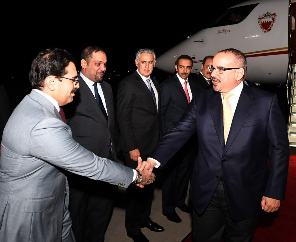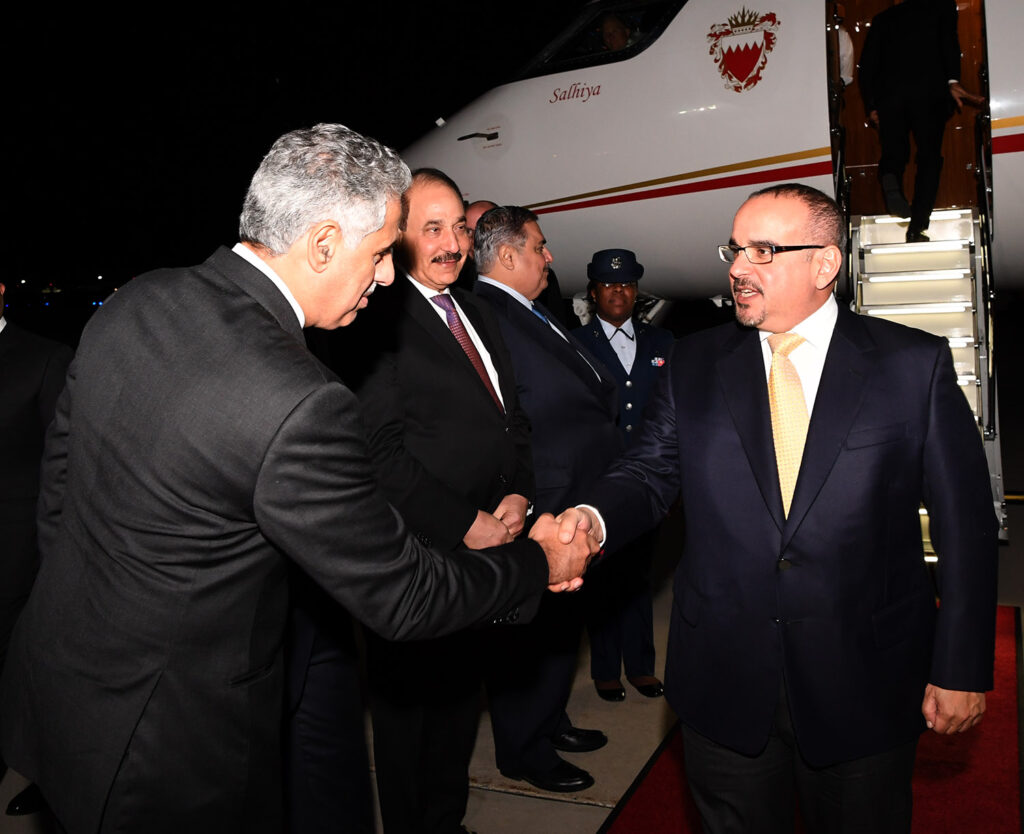 ويرافق سموه خلال هذه الزيارة كل من معالي الشيخ خالد بن أحمد بن محمد آل خليفة وزير الخارجية ومعالي الشيخ محمد بن خليفة آل خليفة وزير النفط وسعادة السيد جميل بن محمد حميدان وزير العمل والشؤون الاجتماعية وسعادة السيد زايد بن راشد الزياني وزير التجارة والصناعة والسياحة ومعالي الشيخ سلمان بن خليفة آل خليفة المدير العام لمكتب النائب الأول لرئيس مجلس الوزراء وسعادة الشيخ عبدالله بن راشد بن عبدالله آل خليفة سفير البحرين لدى الولايات المتحدة وسعادة السيد خالد الرميحي الرئيس التنفيذي لمجلس التنمية الاقتصادية وسعادة السيد عيسى بن عبدالرحمن الحمادي مستشار شؤون الإعلام بديوان ولي العهد وسعادة السيد عصام بن عبدالعزيز الجاسم المدير التنفيذي للمراسم بديوان سمو ولي العهد وسعادة السيد أسامة بن عبدالله العبسي الرئيس التنفيذي لهيئة تنظيم سوق العمل.