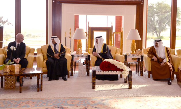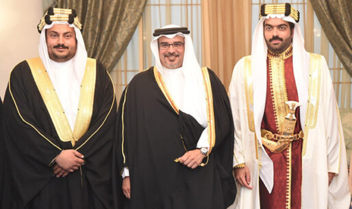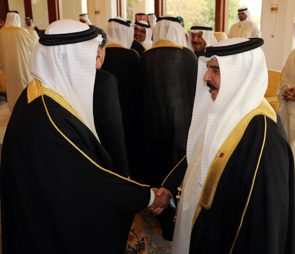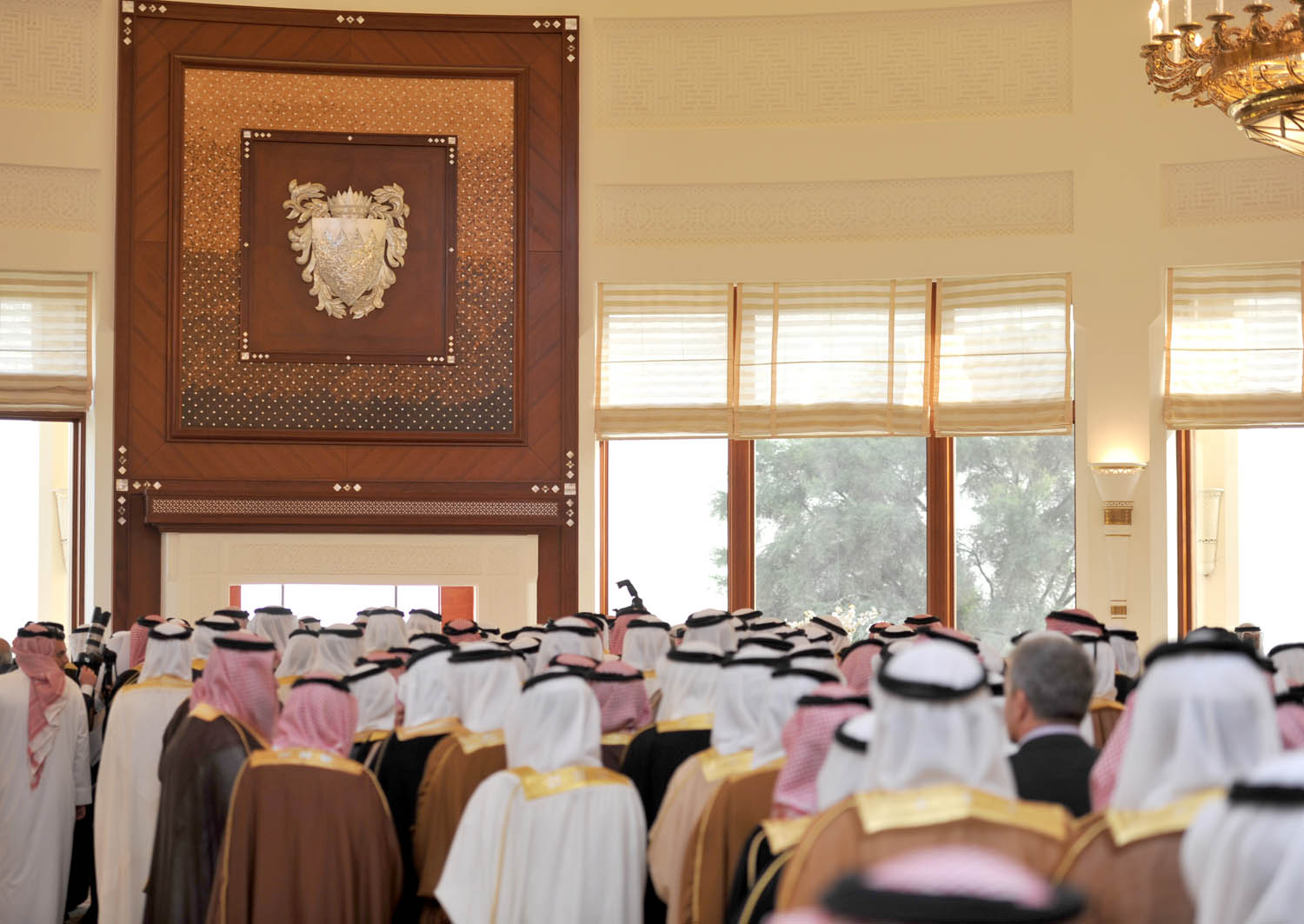 جلالة الملك وسمو رئيس الوزراء وسمو ولي العهد يستقبلون المهنئين بزواج سمو الشيخ محمد بن سلمان آل خليفة