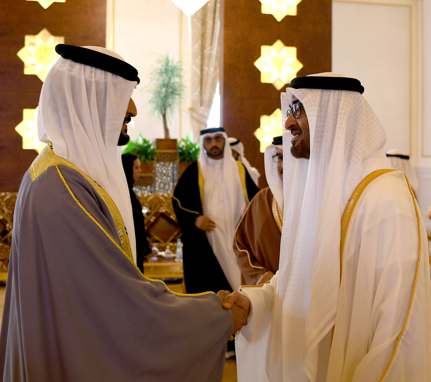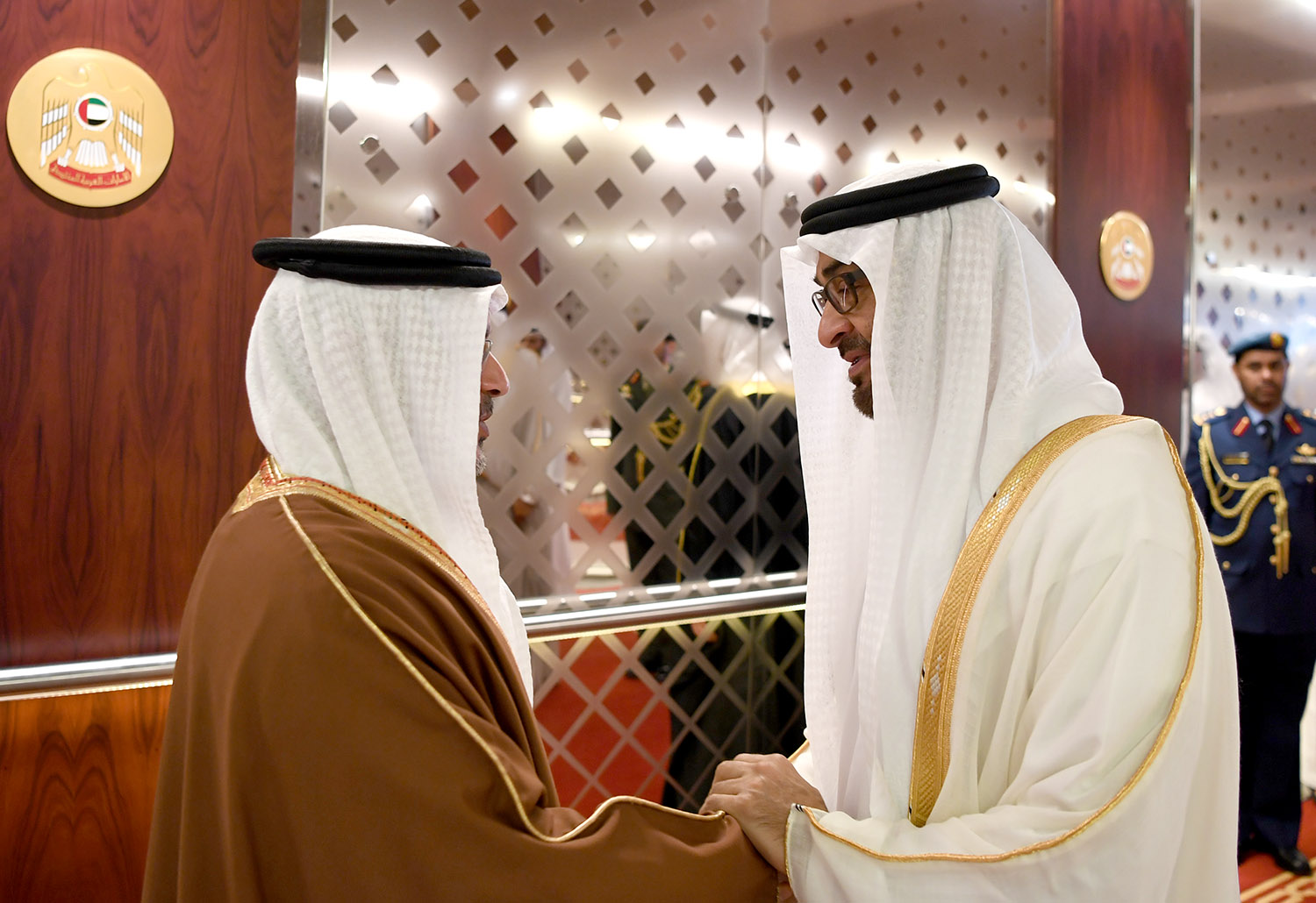 وكان في مقدمة مستقبلي سموه لدى وصوله إمارة أبوظبي صاحب السمو الفريق أول طيار محمد بن زايد آل نهيان ولي عهد أبوظبي نائب القائد الأعلى للقوات المسلحة، الفريق سمو الشيخ سيف بن زايد آل نهيان، نائب رئيس مجلس الوزراء وزير الداخلية، وسمو الشيخ منصور بن زايد آل نهيان، نائب رئيس مجلس الوزراء وزير شؤون الرئاسة، وعدد من أصحاب المعالي الوزراء وكبار المسؤولين بدولة الإمارات العربية المتحدة، وسفيرا البلدين الشقيقين.