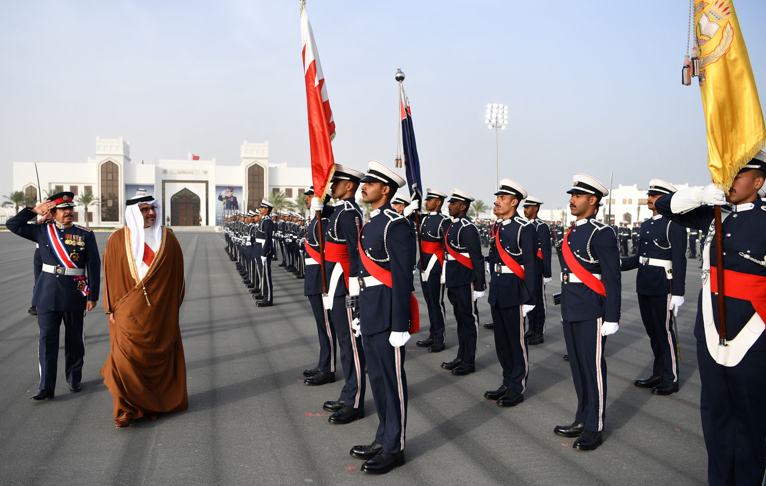 بعدها ، قام الخريجون بأداء القسم ، ثم تفضل صاحب السمو الملكي ولي العهد بتكريم الأوائل منهم ، وتشرف عدد من ضباط وزارة الداخلية والهيئة التعليمية في الأكاديمية الملكية للشرطة بالسلام على سموه ، حفظه الله، معربين عن شكرهم وتقديرهم لتفضل سموه برعاية هذا الحفل وتزويدهم بالتوجيهات التي تصب في الارتقاء بالعمل الأمني، بعدها غادر سموه بمثل ما استقبل به من حفاوة وتكريم.