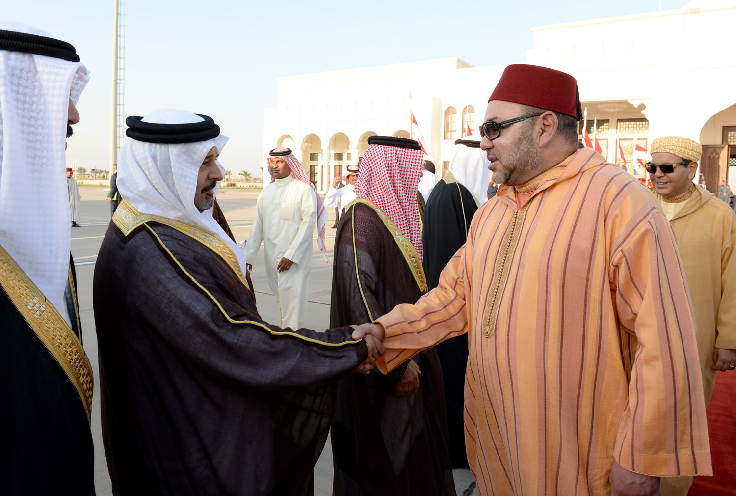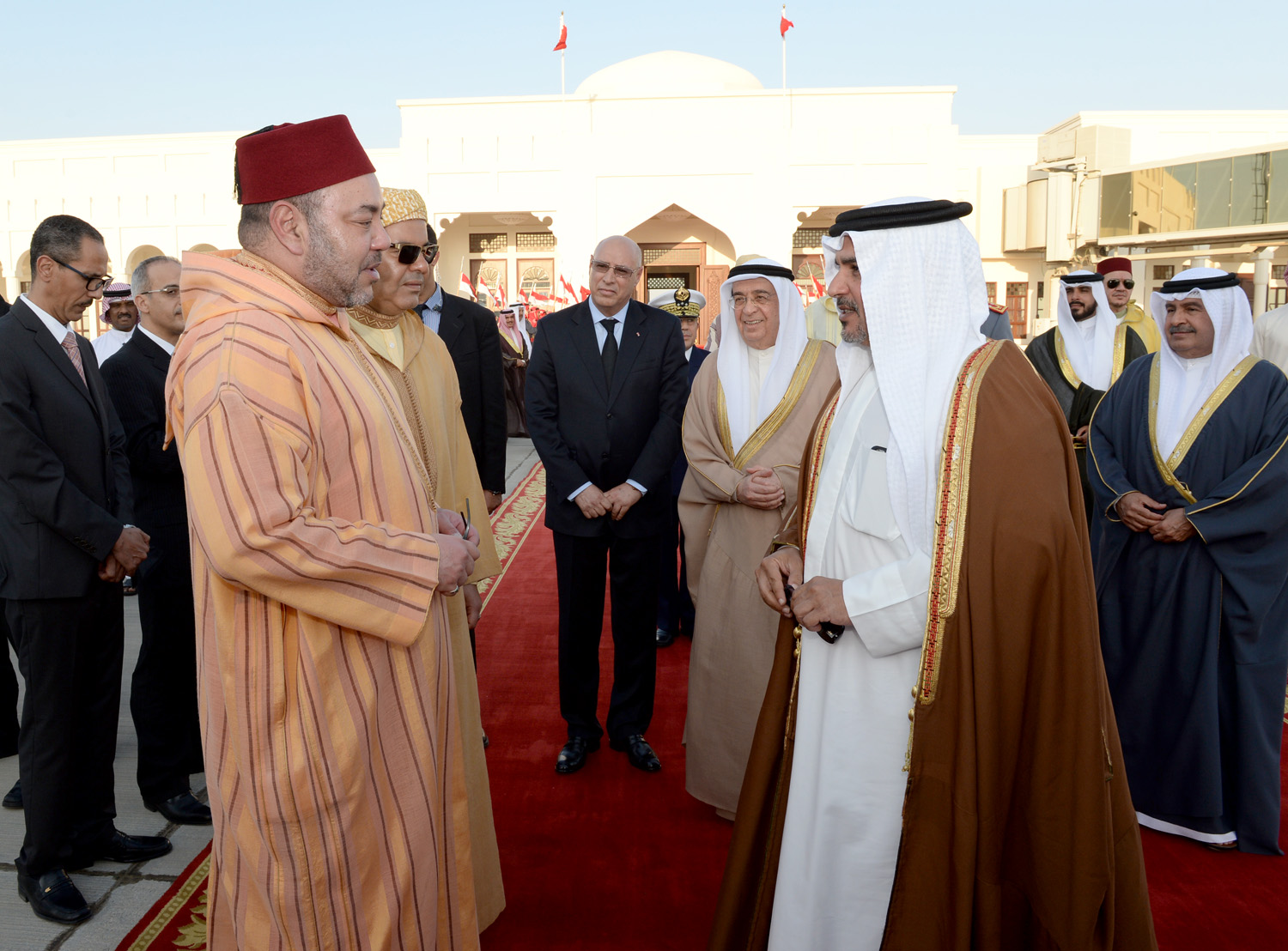 كان صاحب السمو الملكي الأمير سلمان بن حمد آل خليفة نائب جلالة الملك المفدى ولي العهد في مقدمة مودعي أخيه صاحب الجلالة الملك محمد السادس عاهل المملكة المغربية الشقيقة لدى مغادرة جلالته البلاد هذا اليوم من قاعدة الصخير الجوية يرافقه صاحب السمو الملكي الأمير مولاي رشيد بعد زيارة لمملكة البحرين استغرقت عدة أيام أجرى خلالها مباحثات مع أخيه حضرة صاحب الجلالة الملك حمد بن عيسى آل خليفة عاهل البلاد المفدى حفظه الله ورعاه تناولت العلاقات الوثيقة التي تربط بين مملكة البحرين والمملكة المغربية وتعزيز التعاون بينهما كما جرى خلالها التوقيع على بروتوكولين وبرنامج تنفيذي للتعاون بين المملكتين الشقيقتين.