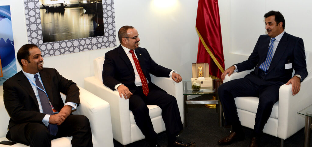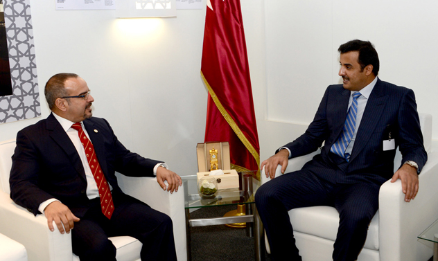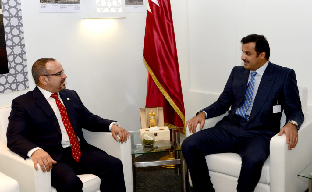 التقى صاحب السمو الملكي الأمير سلمان بن حمد آل خليفة ولي العهد نائب القائد الأعلى النائب الأول لرئيس مجلس الوزراء بأخيه صاحب السمو الشيخ تميم بن حمد آل ثاني أمير دولة قطر الشقيقة وذلك في إطار مشاركة سموهما في أعمال المؤتمر الدولي للتغير المناخي 2015 في باريس حيث نقل سموه تحيات حضرة صاحب الجلالة الملك حمد بن عيسى آل خليفة عاهل البلاد المفدى حفظه الله لأخيه سمو امير دولة قطر وتمنيات جلالته لدولة قطر الشقيقة اضطراد التقدم والنماء .