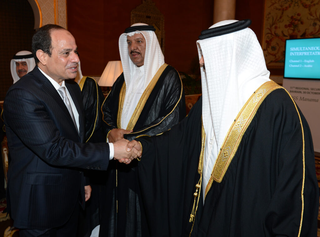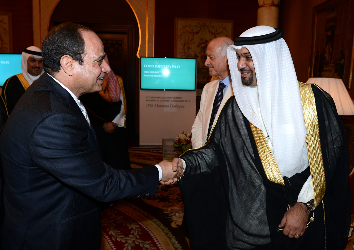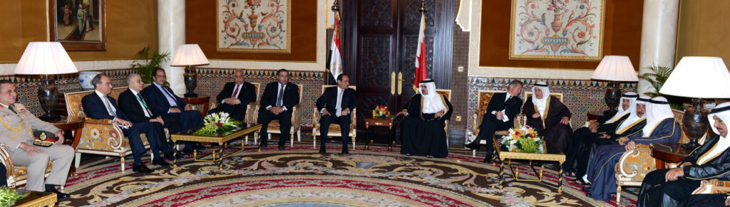 من جانبه عبر فخامة الرئيس السيد عبدالفتاح السيسي رئيس جمهورية مصر العربية الشقيقة عن سروره بالمشاركة في منتدى حوار المنامة، معرباً عن تقديره لمملكة البحرين قيادة وشعباً لما يولونه من اهتمام كبير بدعم العلاقات البحرينية المصرية والتي تجسد عمق ما يربط بينهما من تواصل تاريخي عميق متمنياً لمملكة البحرين دوام الازدهار والتطور في ظل قيادتها الحكيمة .