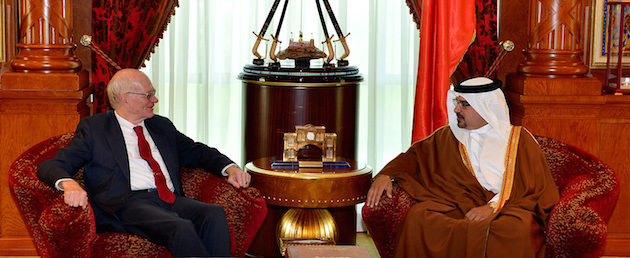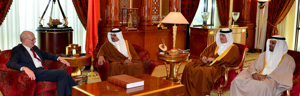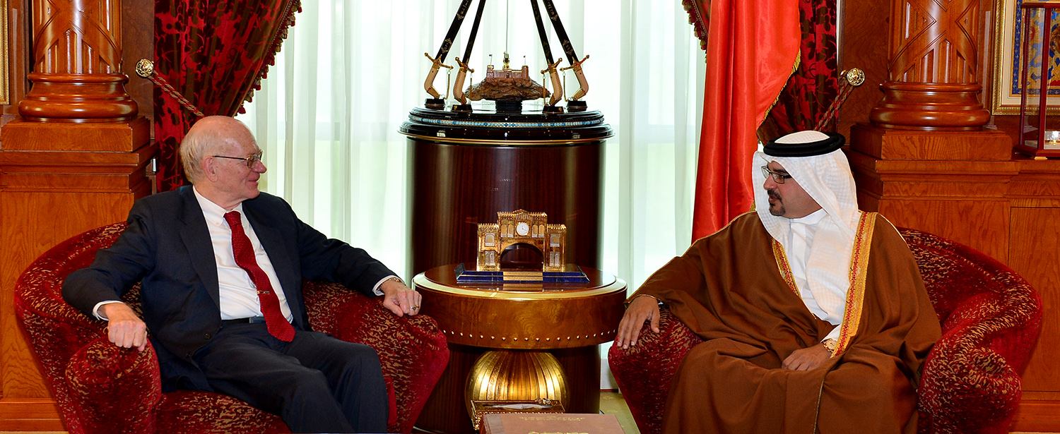 جاء ذلك لدى لقاء سموه حفظه الله اليوم بقصر القضيبية السيد رونالد نيومان سفير الولايات المتحدة الأميركية الأسبق لدى مملكة البحرين رئيس الأكاديمية الأمريكية للدبلوماسية حيث أشاد سموه بالخبرة الدبلوماسية التي يمتلكها السيد نيومان مستذكرا فترة عمله كسفير في مملكة البحرين وما أسهم به من دور في دعم العلاقات بين البلدين الصديقين.