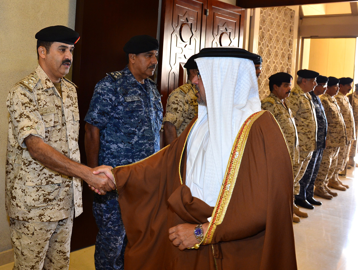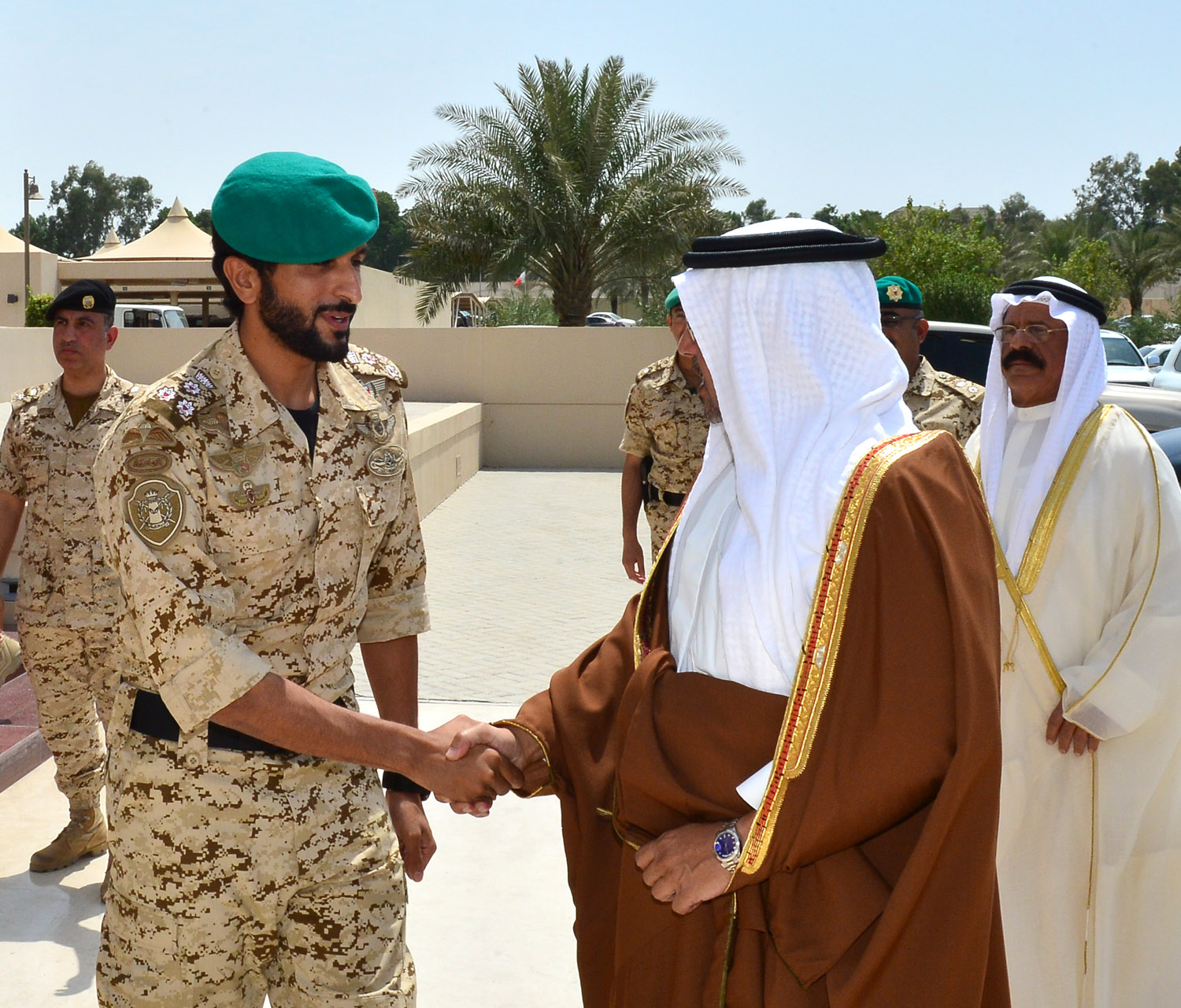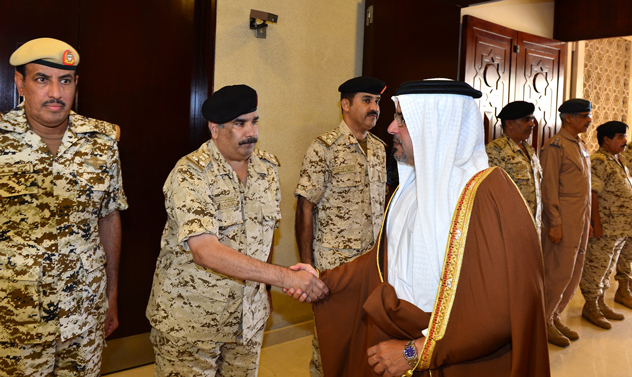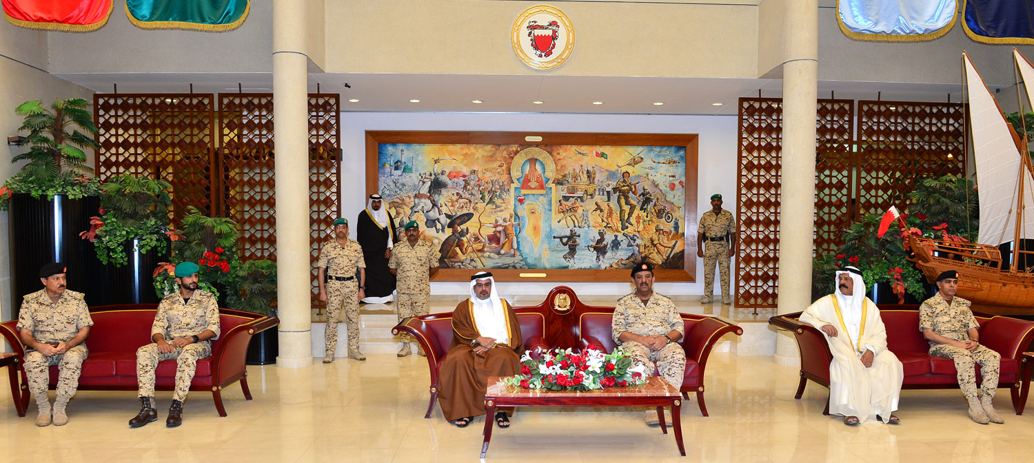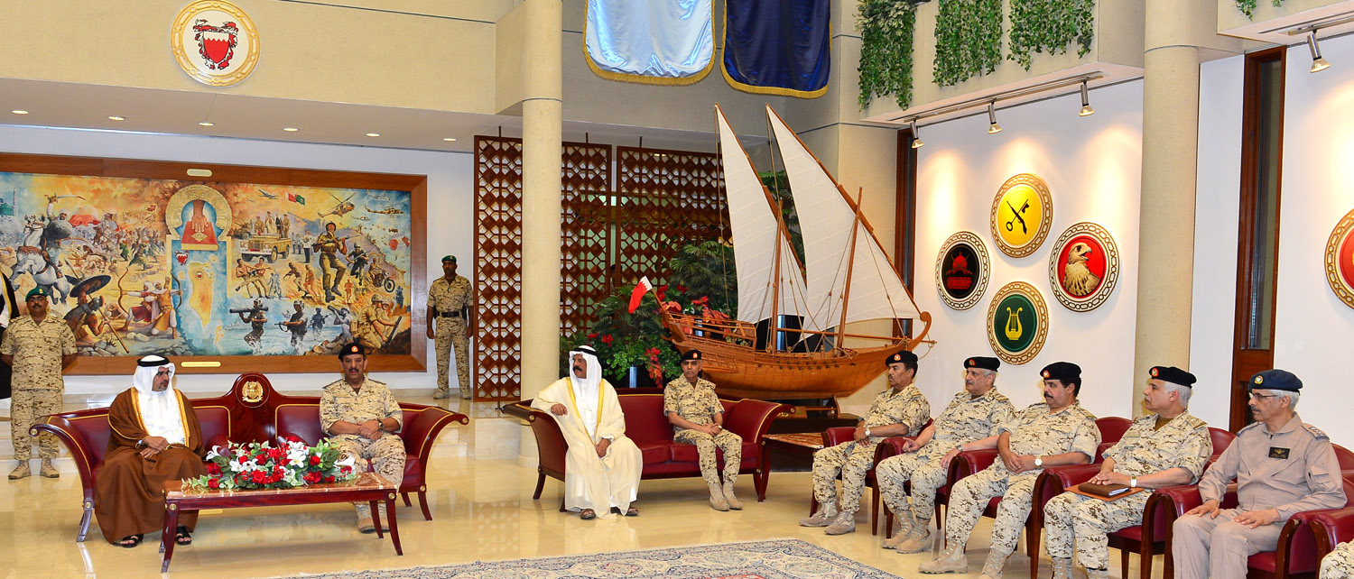 جاء ذلك لدى زيارة سموه للقيادة العامة لقوة دفاع البحرين هذا اليوم، فلدى وصول سموه كان في الاستقبال معالي المشير الركن الشيخ خليفة بن أحمد آل خليفة القائد العام لقوة دفاع البحرين وسعادة الفريق الركن يوسف بن أحمد الجلاهمة وزير شئون الدفاع وسعادة الفريق الركن ذياب بن صقر النعيمي رئيس هيئة الاركان وعدد من كبار الضباط.