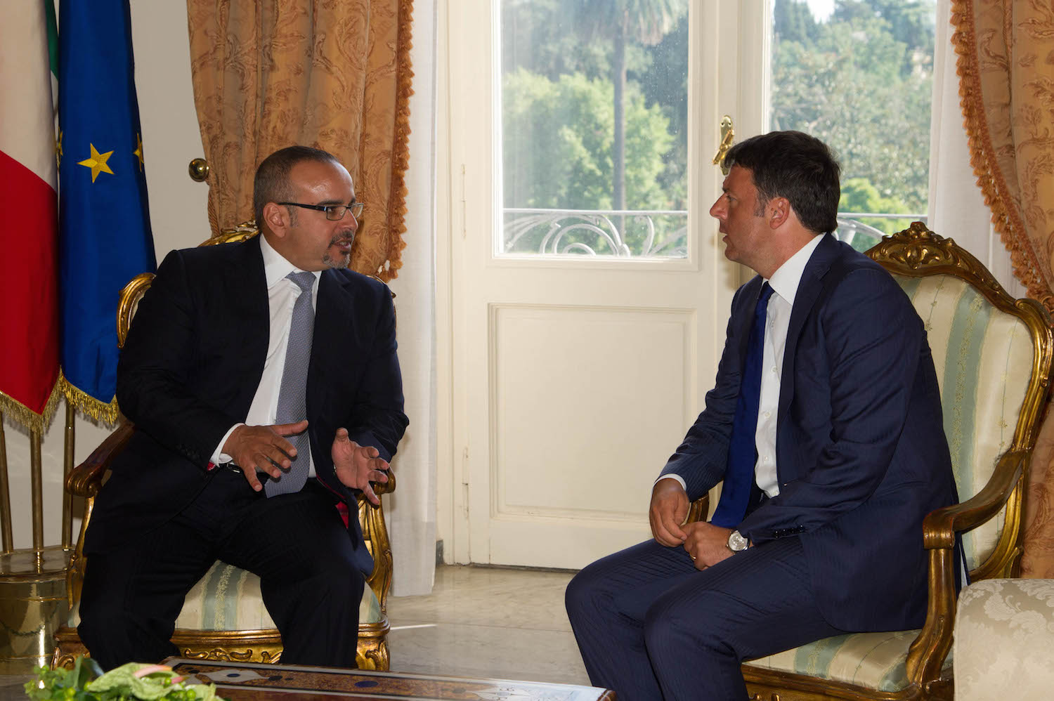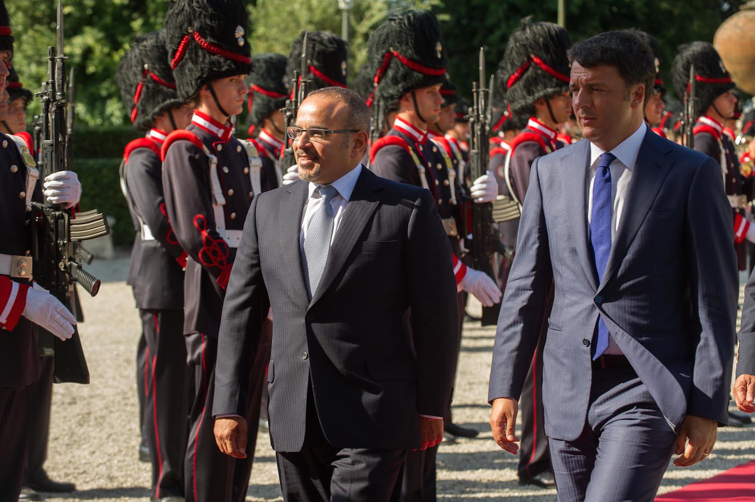 ونوه سموه حفظه الله لدى استقبال السيد ماتيو رينزي رئيس الوزراء الإيطالي لسموه اليوم يرافقه معالي الشيخ خالد بن أحمد بن محمد آل خليفة وزير الخارجية في العاصمة الإيطالية روما خلال زيارة سموه إلى جمهورية إيطاليا على إثر مشاركة سموه في معرض إكسبو 2015 بميلانو، بتطور العلاقات البحرينية الإيطالية وما حققته من نتائج مثمرة في الفترة الماضية تجلت من خلال الزيارات الرسمية السابقة، وما نتج عنها من توقيع للعديد من الاتفاقيات في شتى المجالات المختلفة وما تبعها من زيارات متبادلة على مختلف المستويات، عززت العلاقات الثنائية بين البلدين الصديقين وبما يخدم المصالح المشتركة بينهما وبما يلبي تطلعاتهما والارتقاء بها نحو آفاق أرحب.