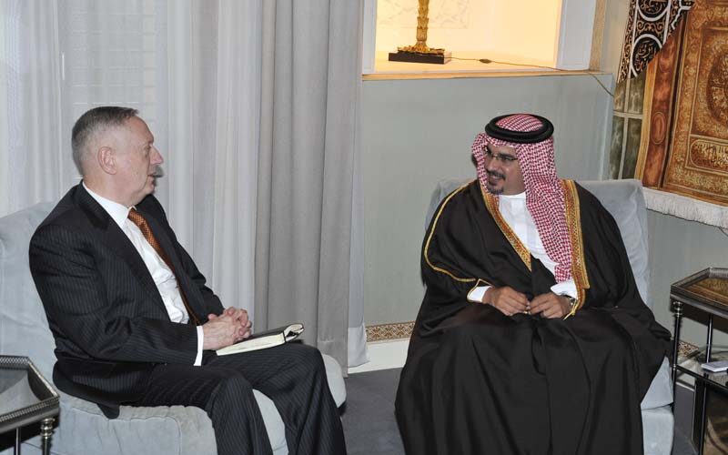 استقبل صاحب السمو الملكي الأمير سلمان بن حمد آل خليفة ولي العهد نائب القائد الأعلى حفظه الله في قصر الرفاع، هذا اليوم الجنرال جيمس ماتيوس قائد القوات المركزية الأمريكية، الذي يزور البلاد للمشاركة في مؤتمر حوار المنامة 2012، إذ أشاد سموه بالصداقة القائمة مع الولايات المتحدة الأمريكية وتنميتها وتطويرها على الأصعدة كافة . مستعرضاً سموه مع الضيف عدداً من القضايا ذات الاهتمام المشترك، مؤكداً على دعم كل ما يعزز العلاقات التاريخية الوطيدة التي تربط البلدين الصديقين في شتى المجالات.وأثنى سموه في سياق حديثه على ما يطرحه حوار المنامة 2012 من مواضيع تعزز المبادىء الأمنية، مشيداً بدور الولايات المتحدة الأمريكية في استقرار المنطقة ومساهمتها في دعم أمنها كبلد صديق تجمعنا به علاقات قديمة امتدت لعقود مضت.حضر المقابلة الشيخ خليفة بن دعيج آل خليفة رئيس ديوان سمو ولي العهد.