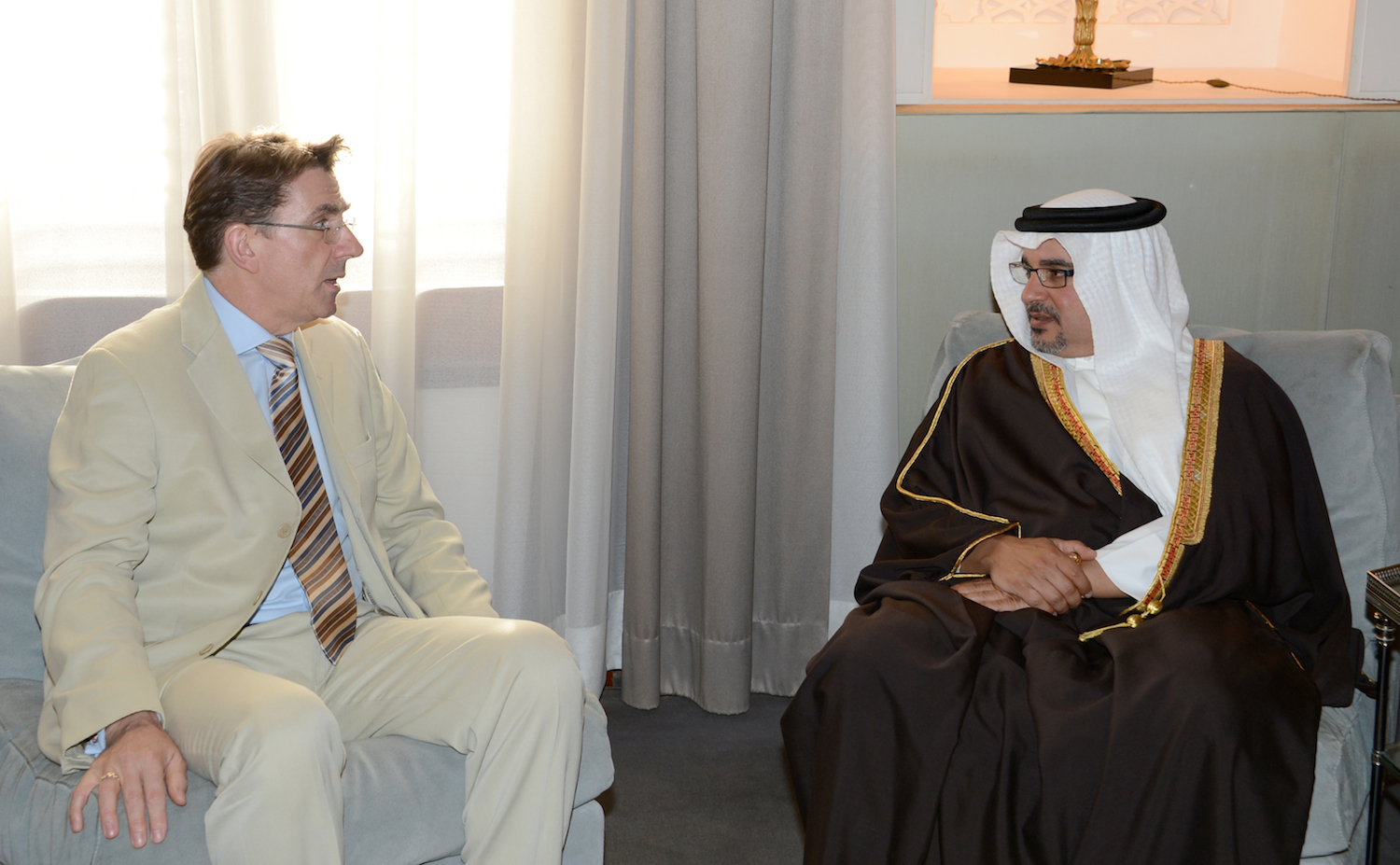 أعرب صاحب السمو الملكي الأمير سلمان بن حمد آل خليفة ولي العهد نائب القائد الأعلى النائب الأول لرئيس مجلس الوزراء عن تقدير مملكة البحرين للمملكة المتحدة على اهتمامها المستمر في تأكيد تميز علاقات الصداقة والتعاون بين البلدين الصديقين المبنية على أسس راسخة من الامتداد التاريخي.
