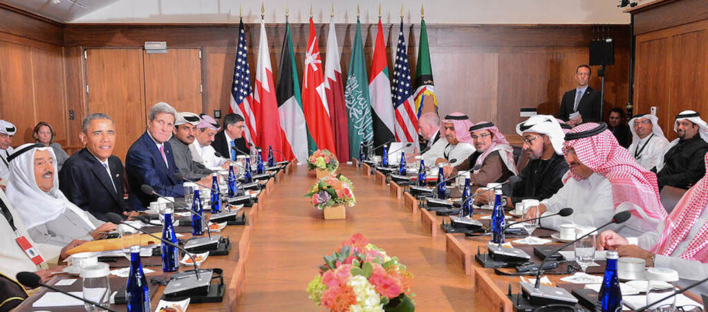موضحاً سموه بأن تحقيق الأمن والسلام بمنطقة الشرق الأوسط وما يمثله من أهمية استراتيجية وحيوية وتأثير بالغ يستلزم جهوداً مخلصة من جميع الأطراف. وفي هذا الصدد أكد سموه بأن وضع الملف النووي الإيراني ضمن جدول أعمال اجتماعات كامب ديفيد يأتي وفق مساعي دول مجلس التعاون لدول الخليج العربية التي أكدت مراراً على أهمية النأي بالمنطقة عن التسلح النووي وضرورة الاستخدام الأمثل للطاقة النووية للأغراض السلمية. مشيراً إلى أن مملكة البحرين تتطلع بأن يساهم الاتفاق الإطاري حول الملف النووي الإيراني في تحقيق تطلعات شعوب المنطقة من حيث حسن الجوار وعدم التدخل بالشؤون الداخلية واستدامة السلام وأمن الطاقة.