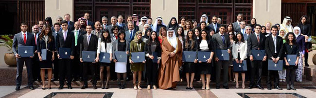 هذا وقد تفضل صاحب السمو الملكي ولي العهد نائب القائد الأعلى النائب الأول لرئيس مجلس الوزراء بتسليم الطلبة الخريجين شهادات التخرج ضمن برنامج سمو ولى العهد للمنح الدراسية العالمية .