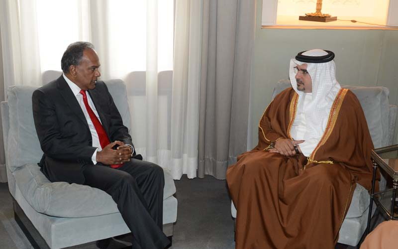 شانموجـام وزير خارجية جمهورية سنغافورة الصديقة بحضور سعادة الدكتور غانم بن فضل البوعينين وزير الدولة لشؤون الخارجية ، حيث رحب سموه بزيارته إلى المملكة للمشاركة في الأعمال المنصرمة للاجتماع الوزاري الثالث لدول مجلس التعاون و رابطة أمم جنوب شرق آسيا (آسيان). و أشار سموه إلى مجالات التعاون المتاحة مع سنغافورة في إطار رابطة آسيان من خلال دور مملكة البحرين كمنسق لدول مجلس التعاون لدول الخليج العربية في الاجتماعات الوزارية المقبلة بين الكتلتين.من جانبه، أعرب وزير الخارجية السنغافوري عن اهتمام بلاده بمواصلة تنمية العلاقات الثنائية مع مملكة البحرين و التعاون و التنسيق بينهما.
