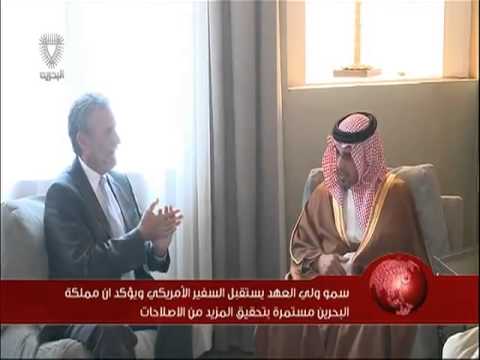 ودعا صاحب السمو الملكي ولي العهد إلى إيجاد مزيد من فرص التعاون بين البلدين الصديقين، وتعزيز العلاقات الثنائية . مؤكداً سموه أهمية الاستفادة من الخبرات والمكاسب التي حققتها كل من البحرين والولايات المتحدة، لتنعكس إيجاباً على مجالات التنسيق في مختلف الميادين. من جانبه أكد السفير الأمريكي حرص وتطلع الولايات المتحدة إلى دعم كل ما من شأنه توطيد العلاقات الثنائية بين البلدين والشعبين الصديقين.